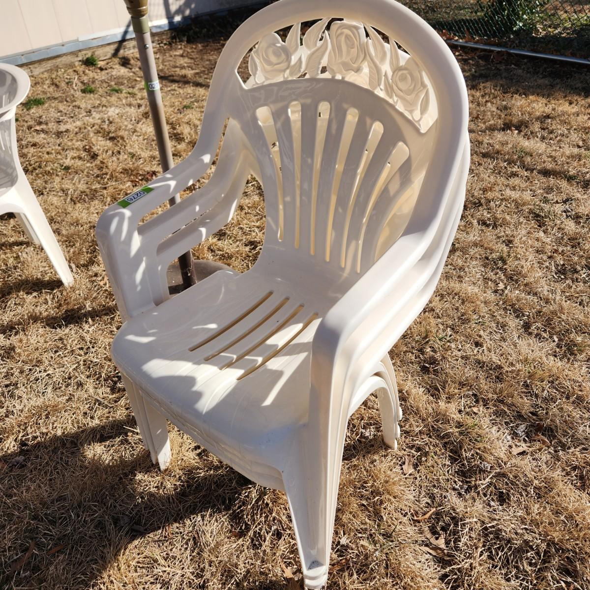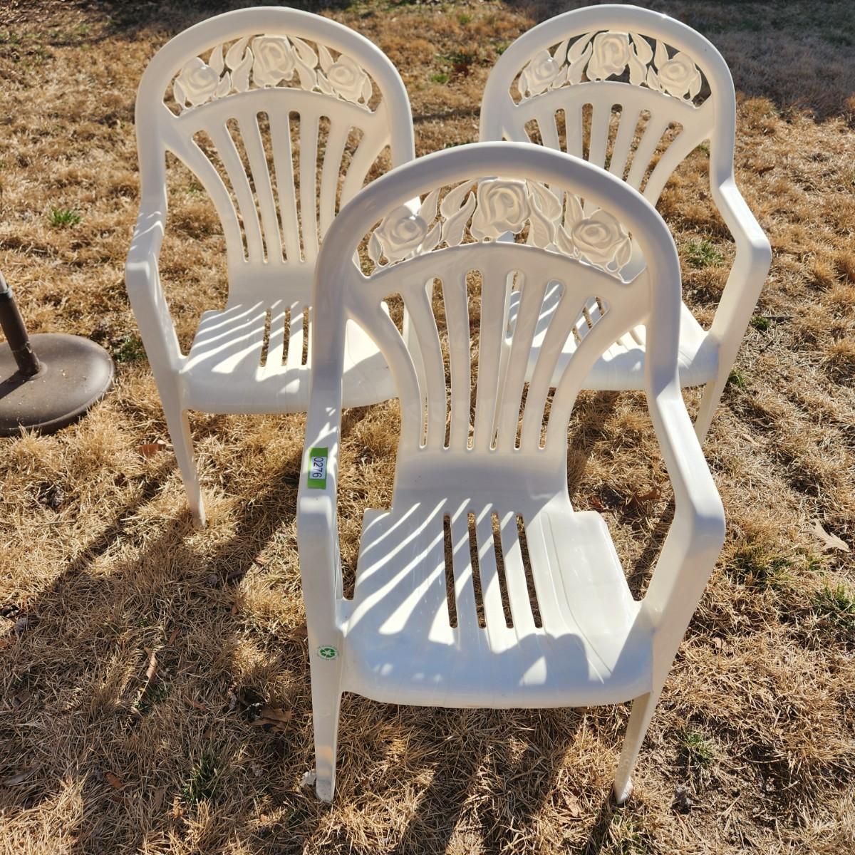 3 Highback Patio Plastic Chairs stackable