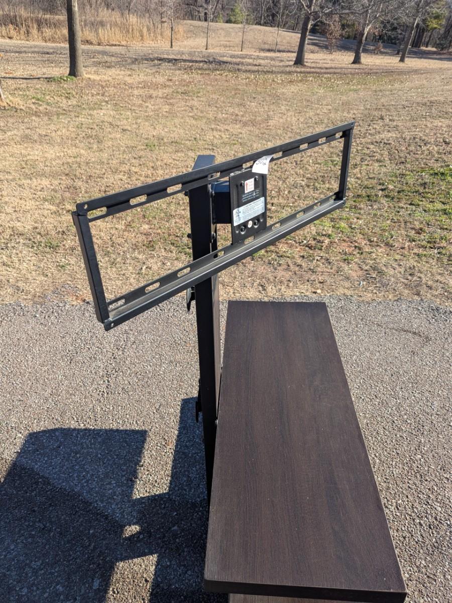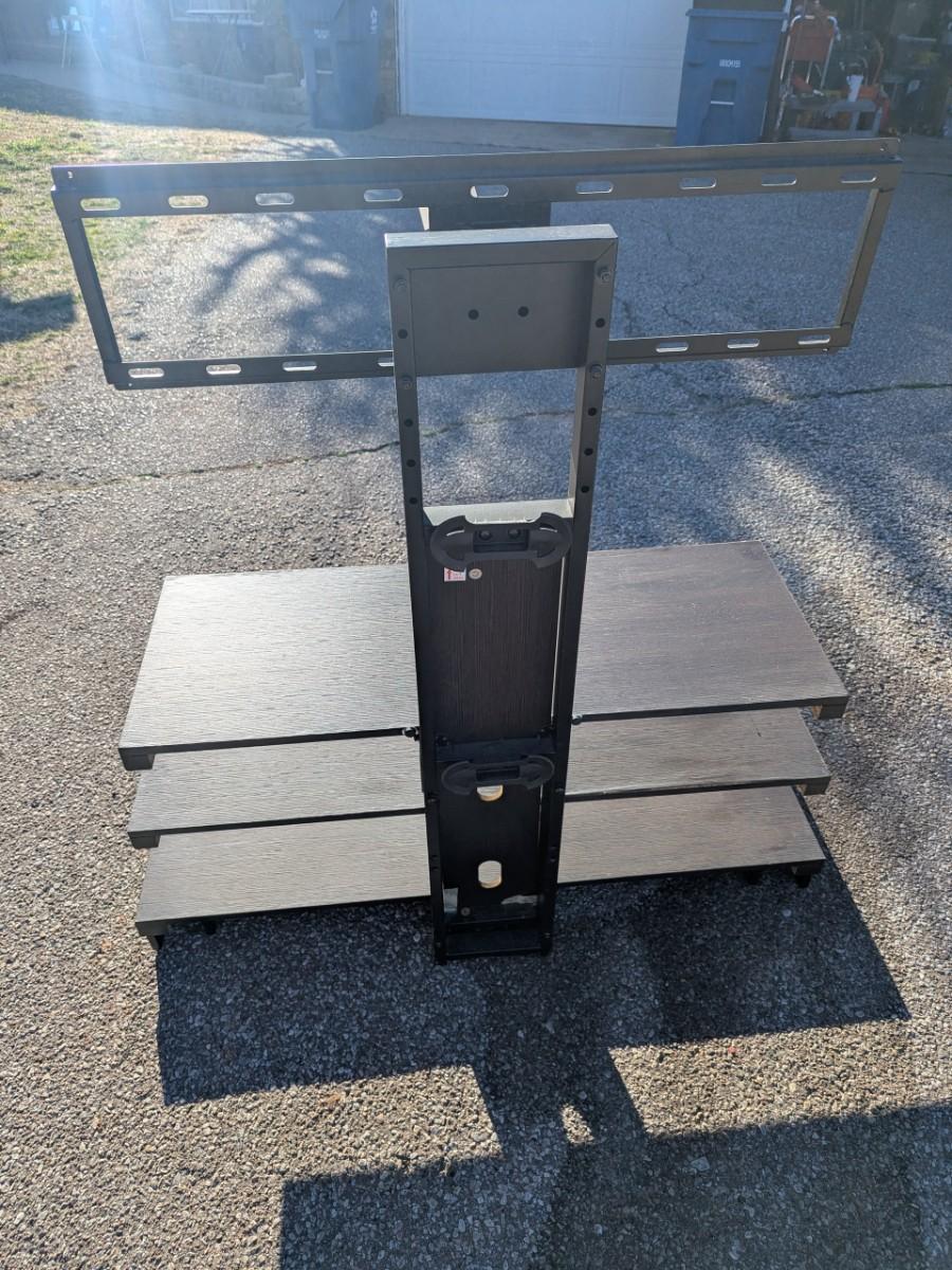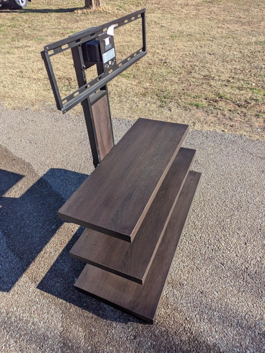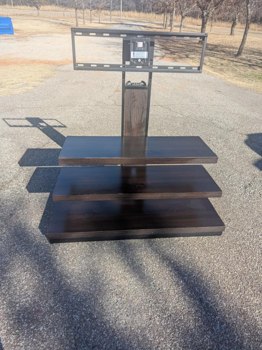 3 in 1 TV stand in dark brown wood finish 48 in side 23 in deep, height to top of stand is 50 in
