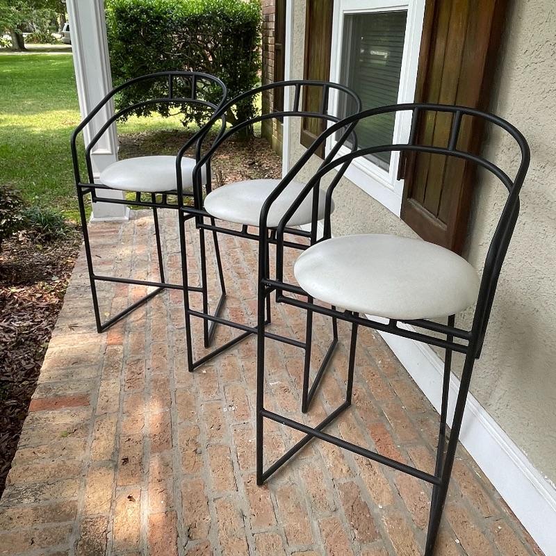 3 Indoor Curved-Back Metal and Vinyl Barstools
