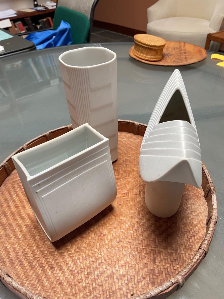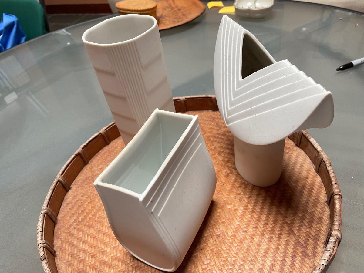 Three piece a lot of interesting vases by Rosenthal. These are white unglazed pieces.