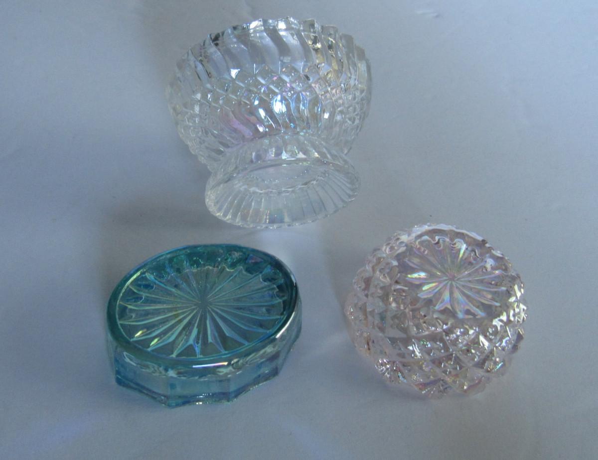 Nice shape. Pale pink, teal, clear. Shipping is available at actual shipping cost plus $5.00 handling fee per box for supplies/labor. See our terms for details. All sales are final. Condition notes may not be all inclusive, we may miss some issues as most vintage items are not in mint condition and have some degree of wear, paint loss, etc, but we always try to note obvious damage.
