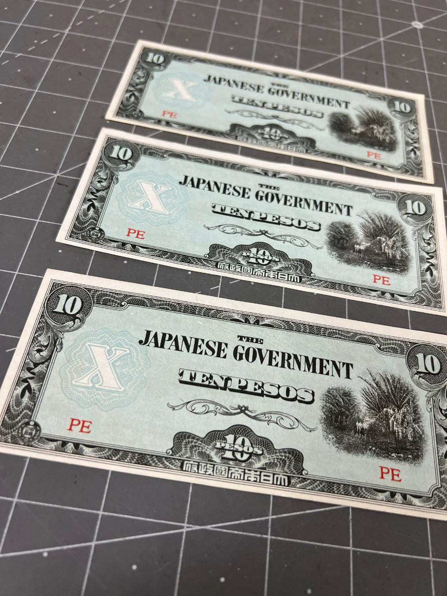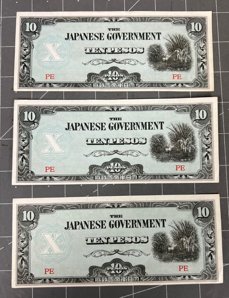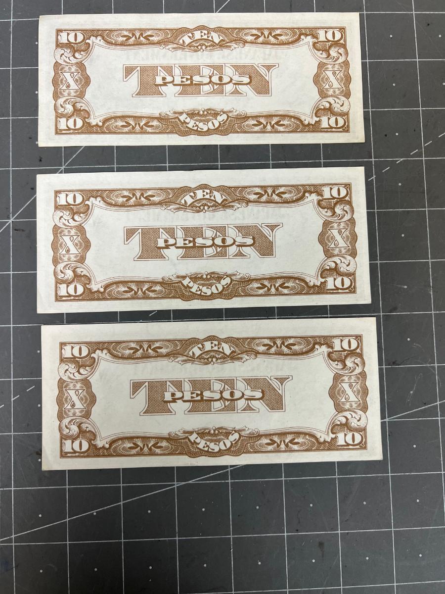 3 Japanese 10 Peso Bills from Philippines Uncirculated WWII
