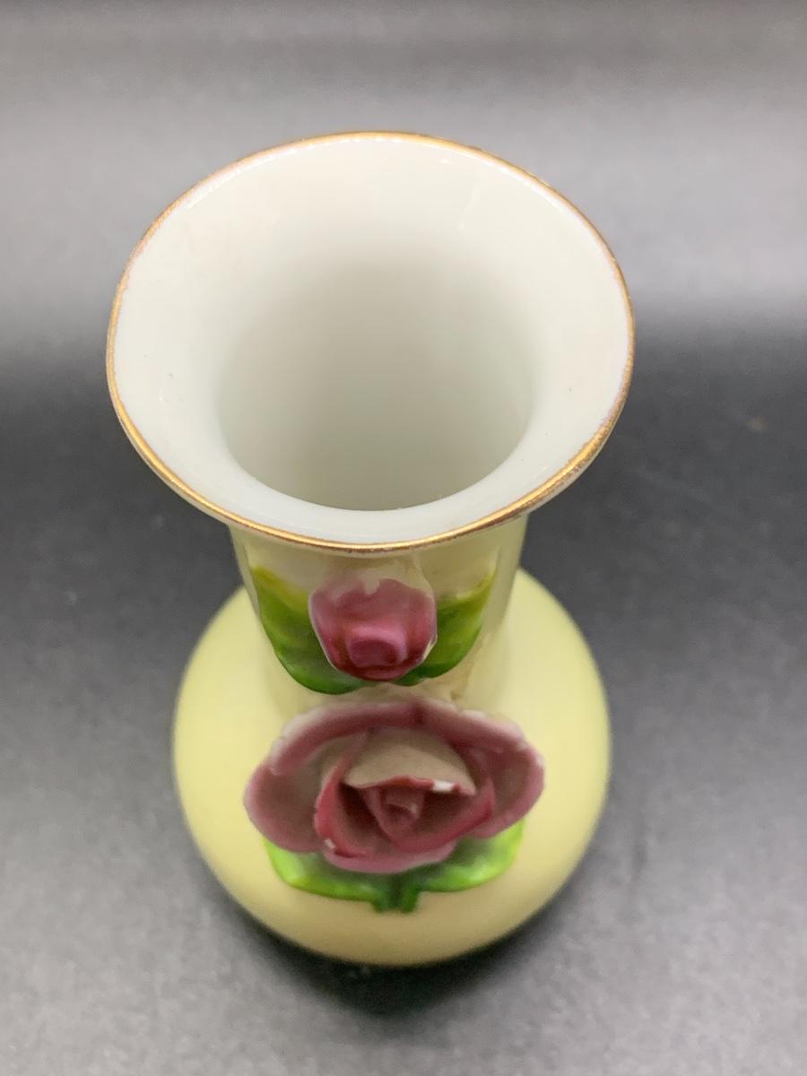 Vintage Andrea by Sadek Ginger Jar 6884 Flying Bird. Pink Rose Maruyama Bud Vase - Stamped signature on the bottom saying it is made in Occupied Japan. White vase or perfume bottle with top. Weight less than 1 lb.
