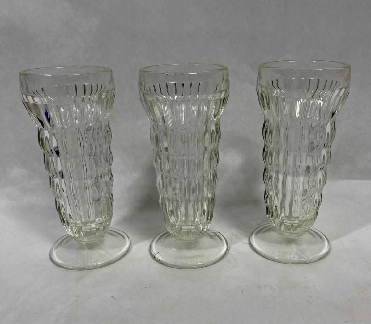 3 Jeanette Vintage Glass Footed Parfait Glasses
