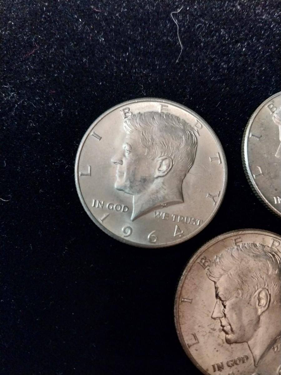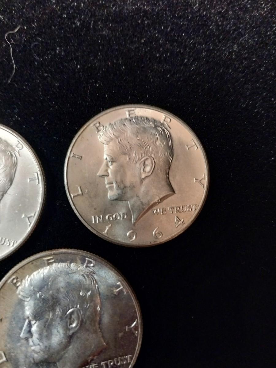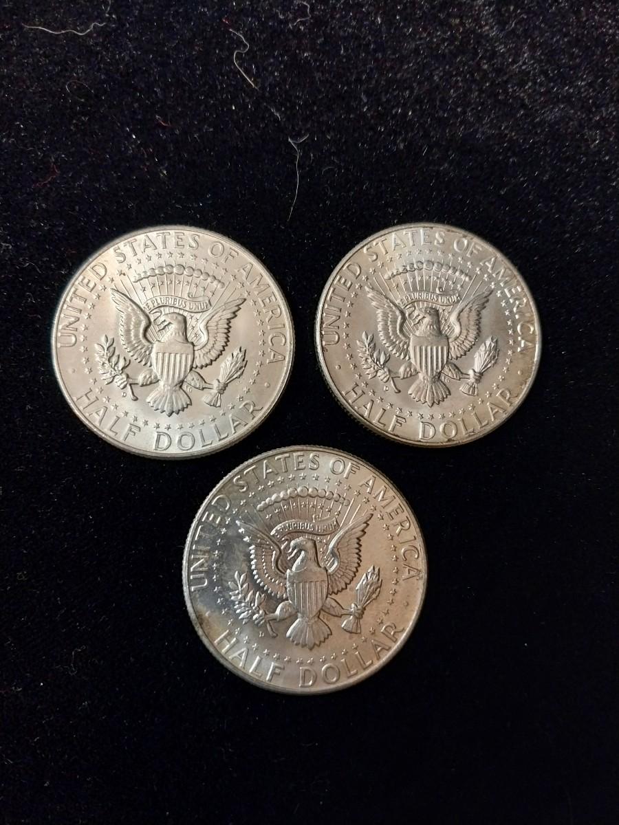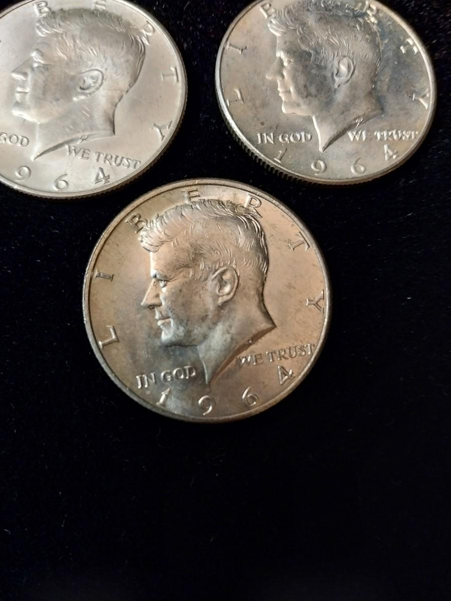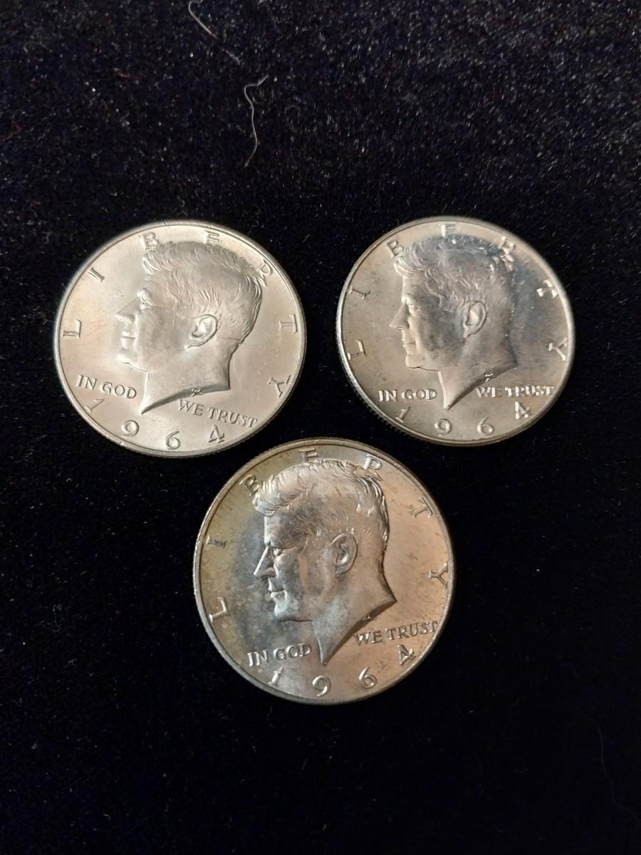 3 KENNEDY 1964-D SILVER HALF DOLLARS