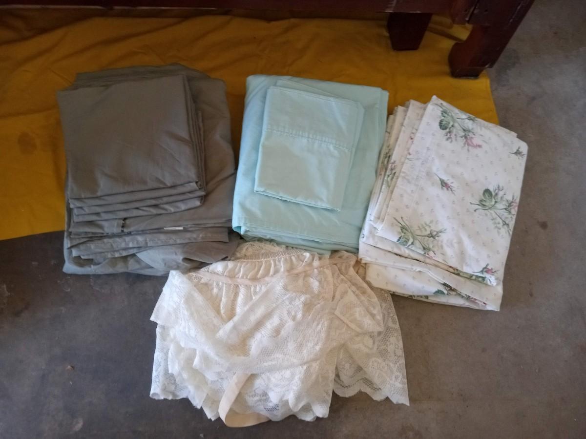 3 KING SIZE SHEET SETS AND A DUST RUFFLE