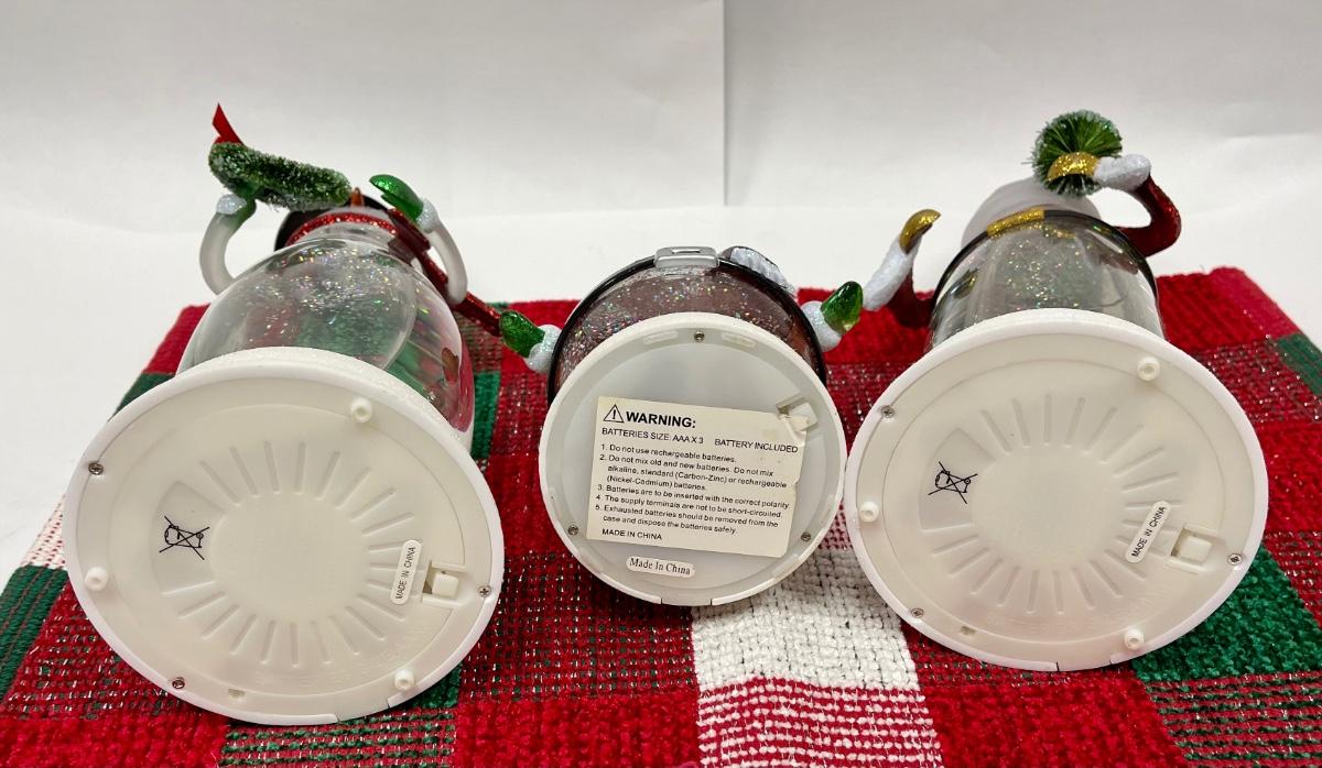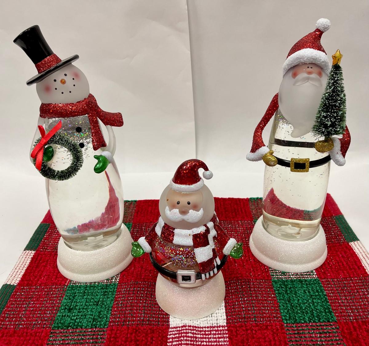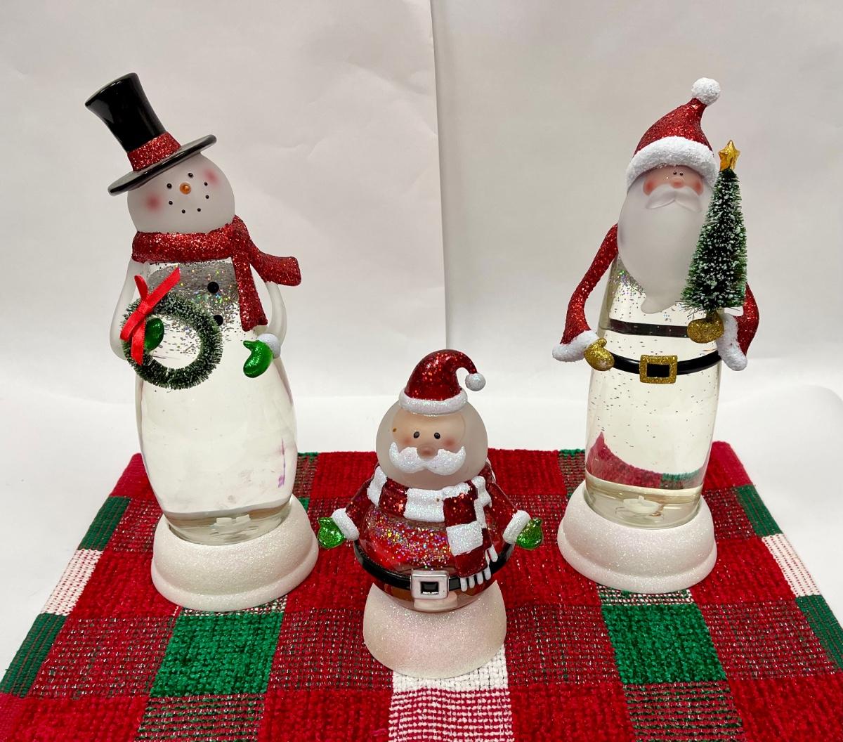 3 large acrylic snowglobe body figurines - Christmas Santas and Snowman