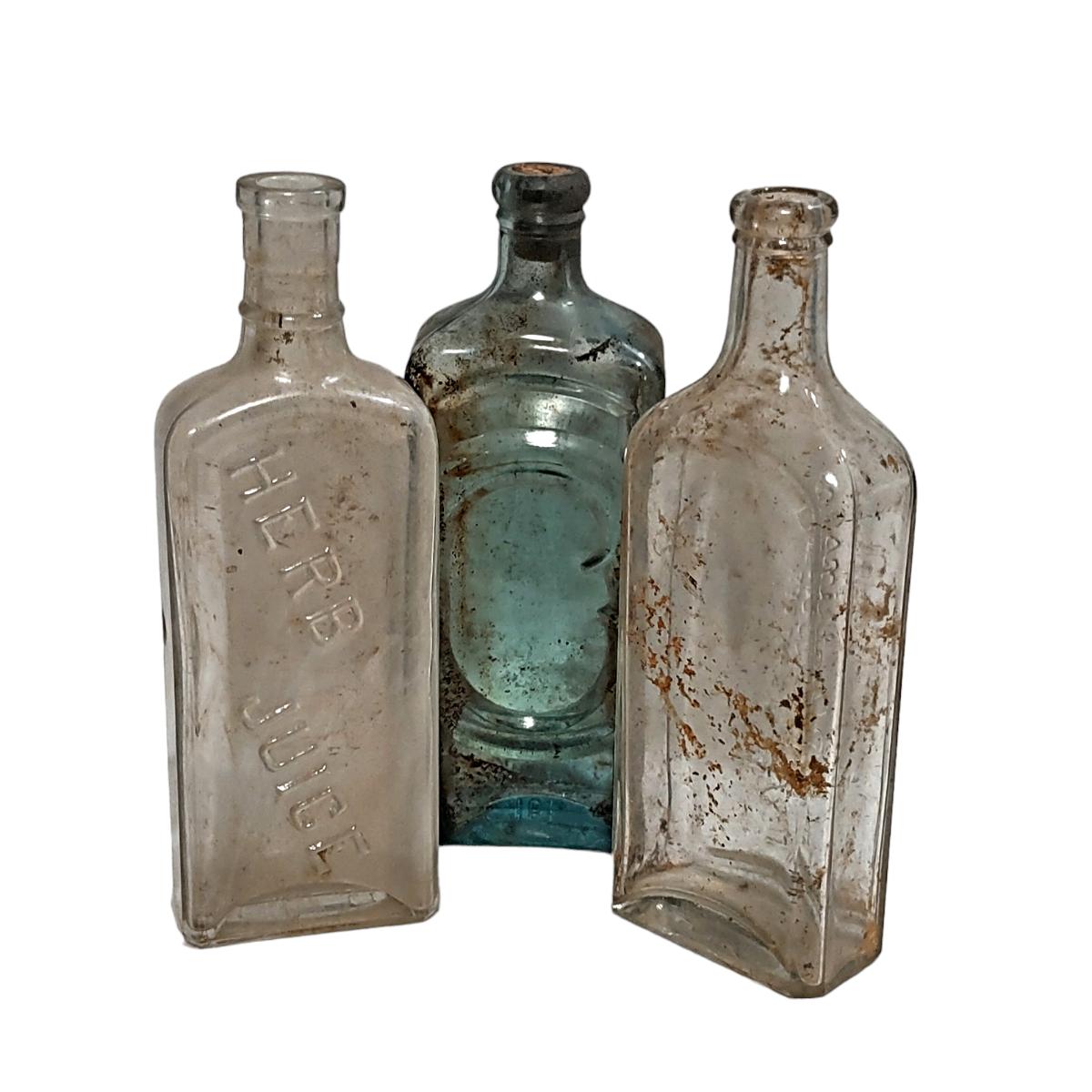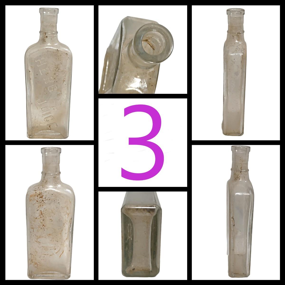 3. Antique Clear Glass Cork Top Bottle Marked "HERB JUICE" on the Front of the Bottle