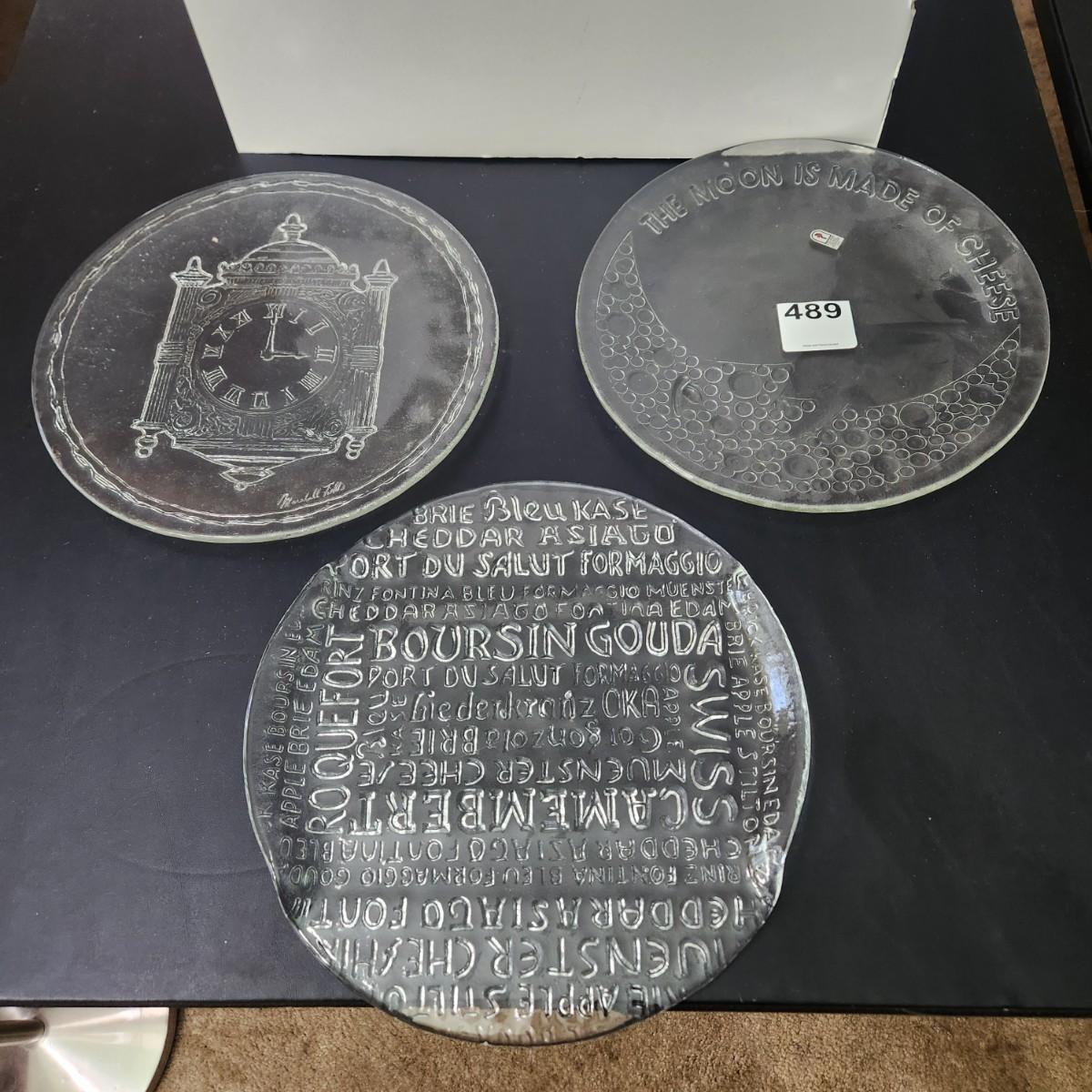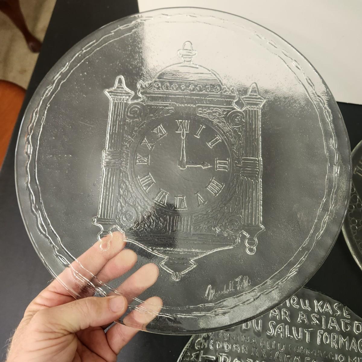 3 Large Glass Serving Cheese Plates Pilgrim Glass Marshall Fields