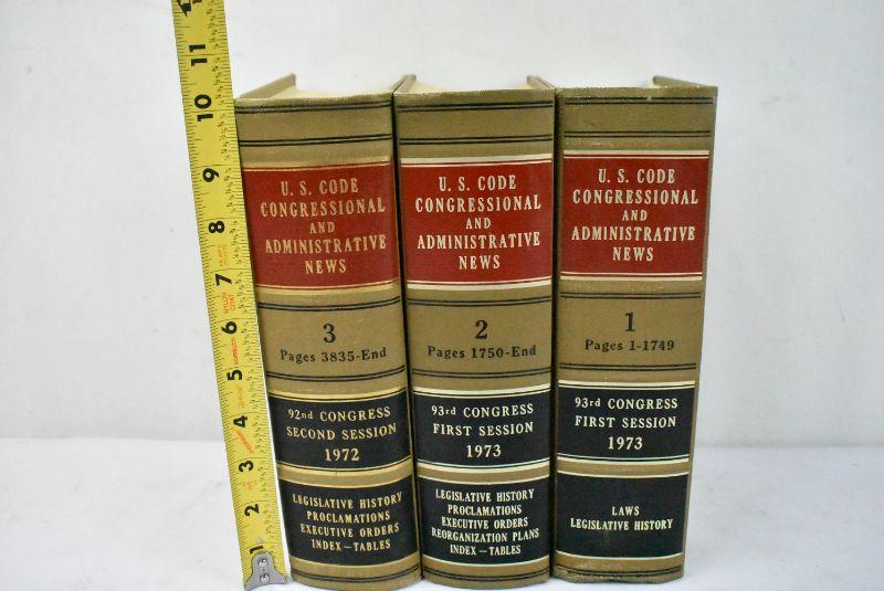 3 Large Hardcover Books: US Code Congressional and Administrative News 1972 & 1973 Vintage