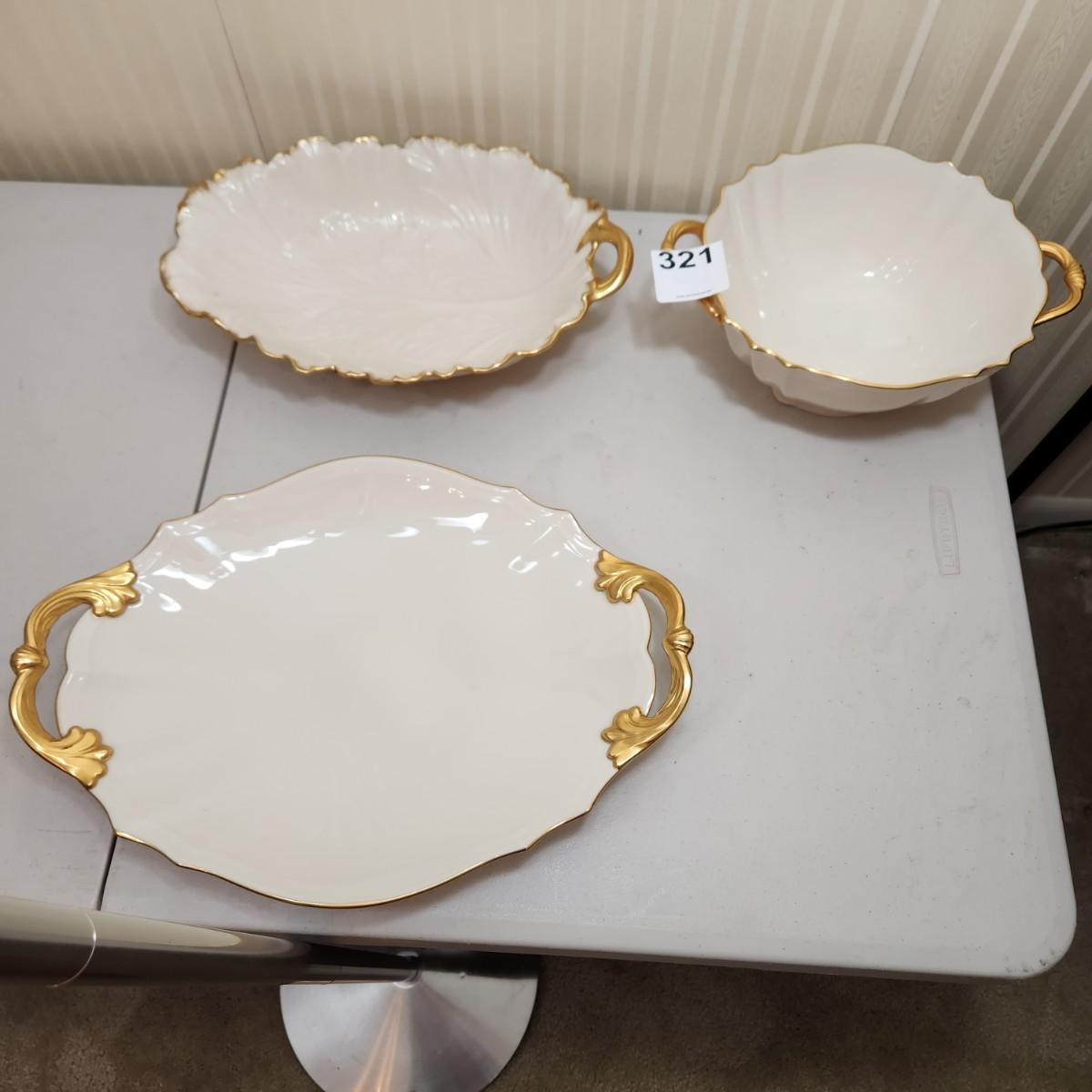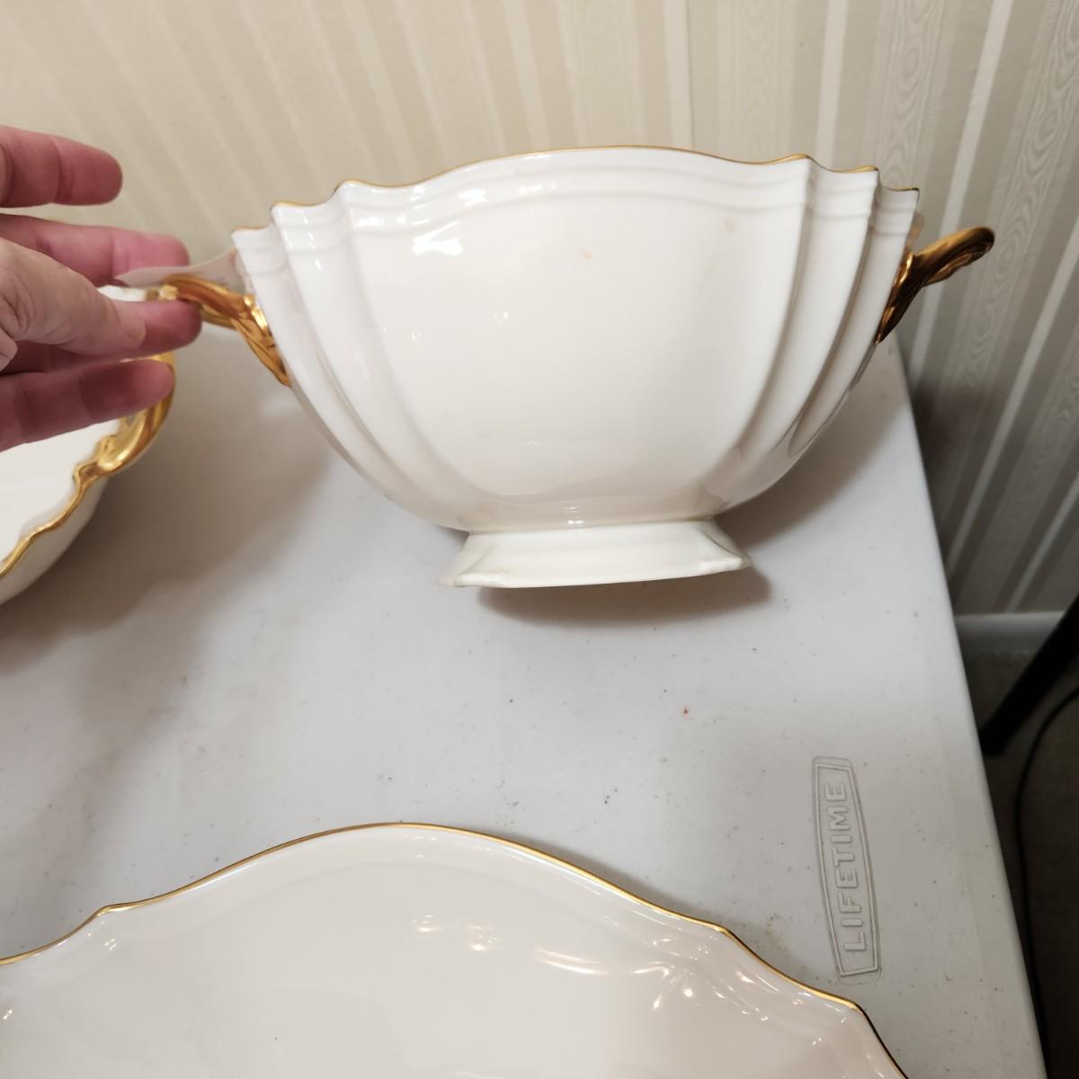 4 Large Lenox Serving Dishes Platter Bowl 24K Gold Trim Made in USA