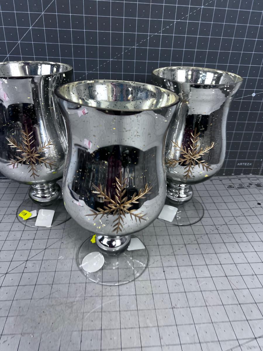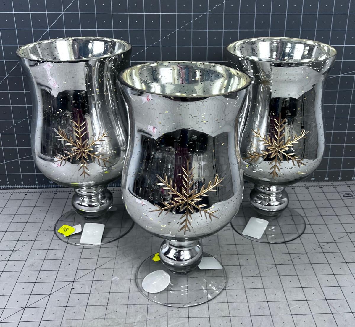 3 LARGE MERCURY GLASS Votive Holder or Vase