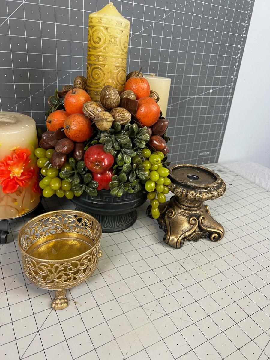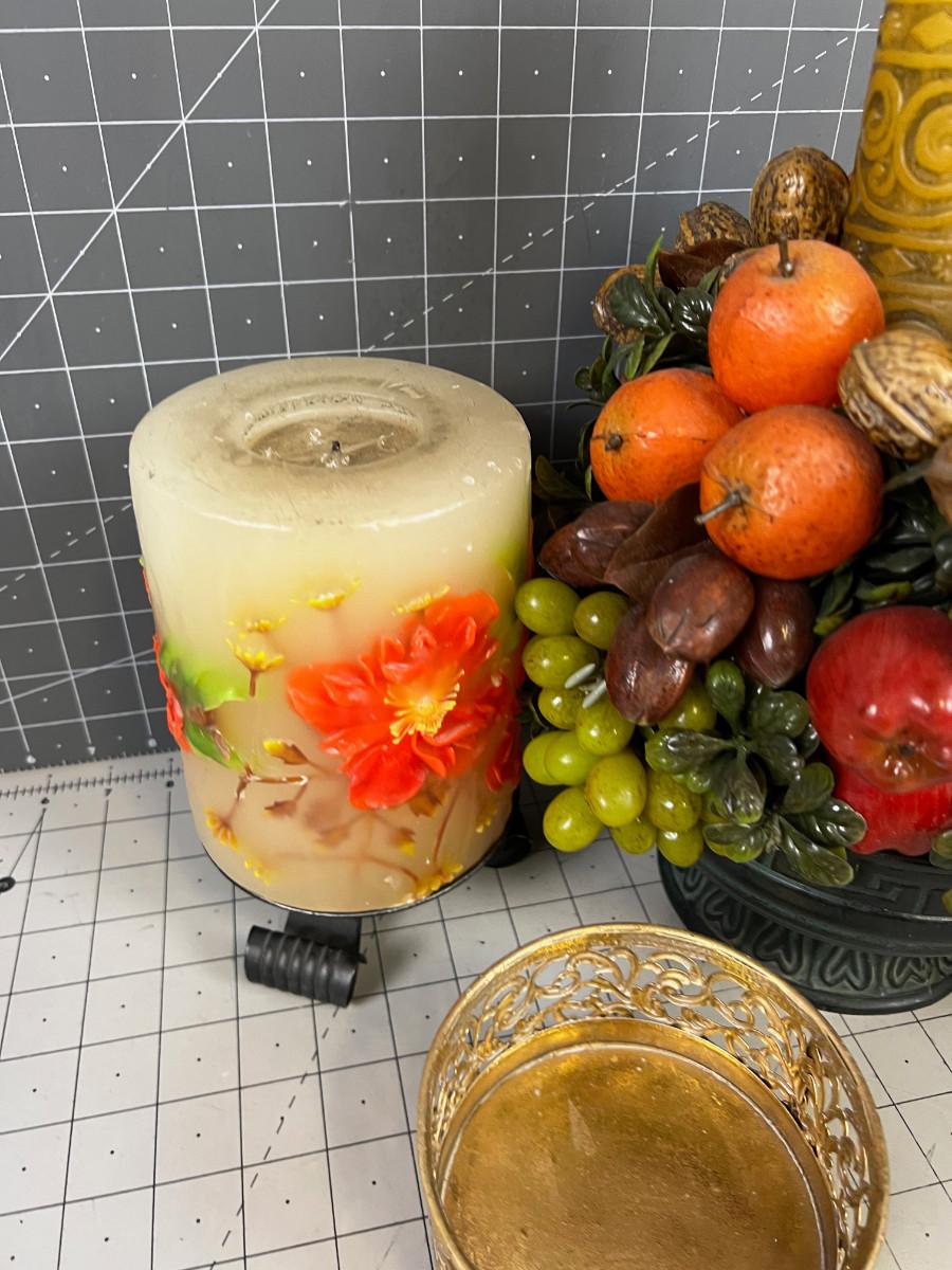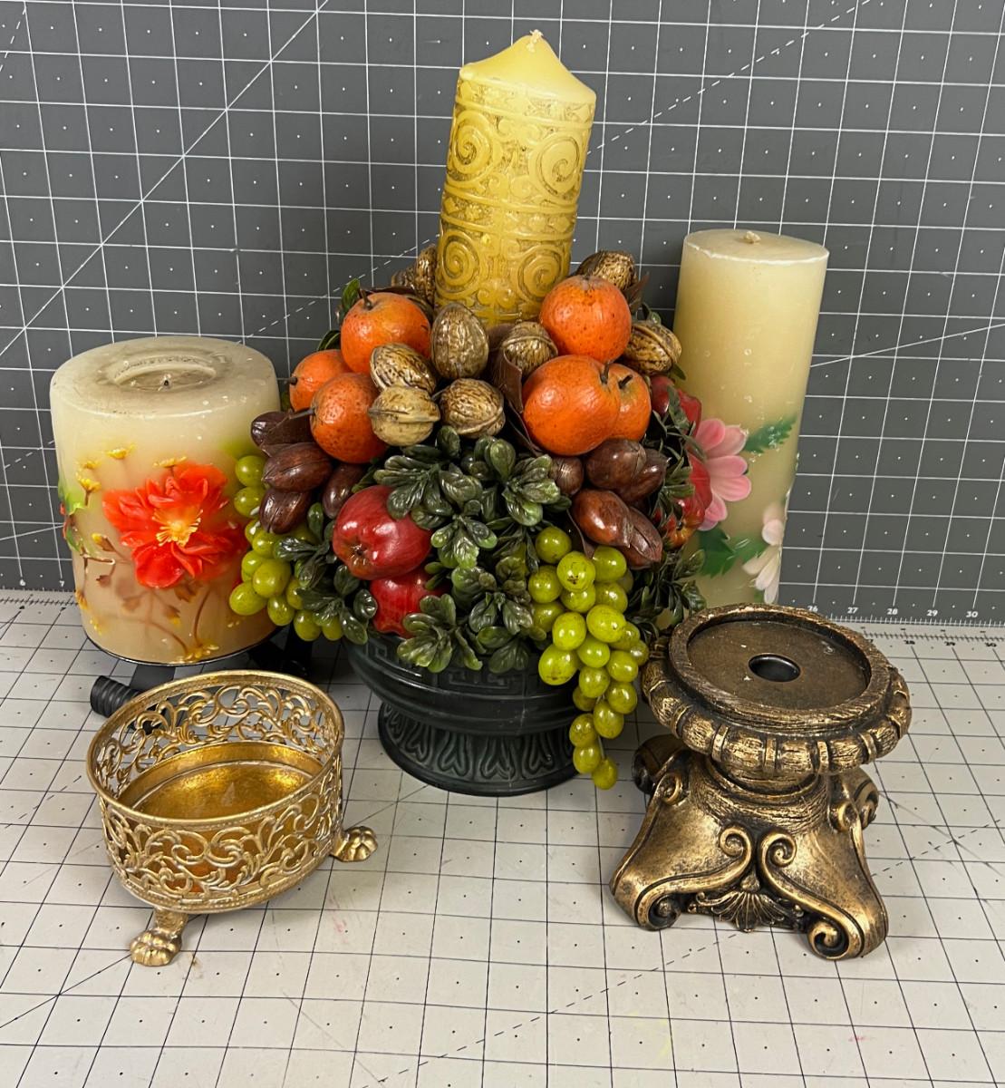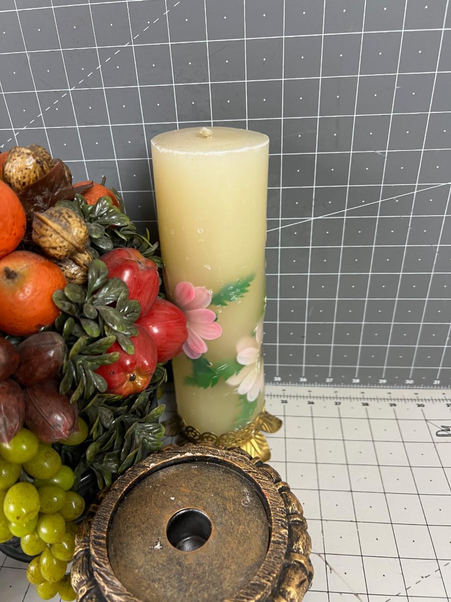 (3) Large Vintage Candles and Candle Holders