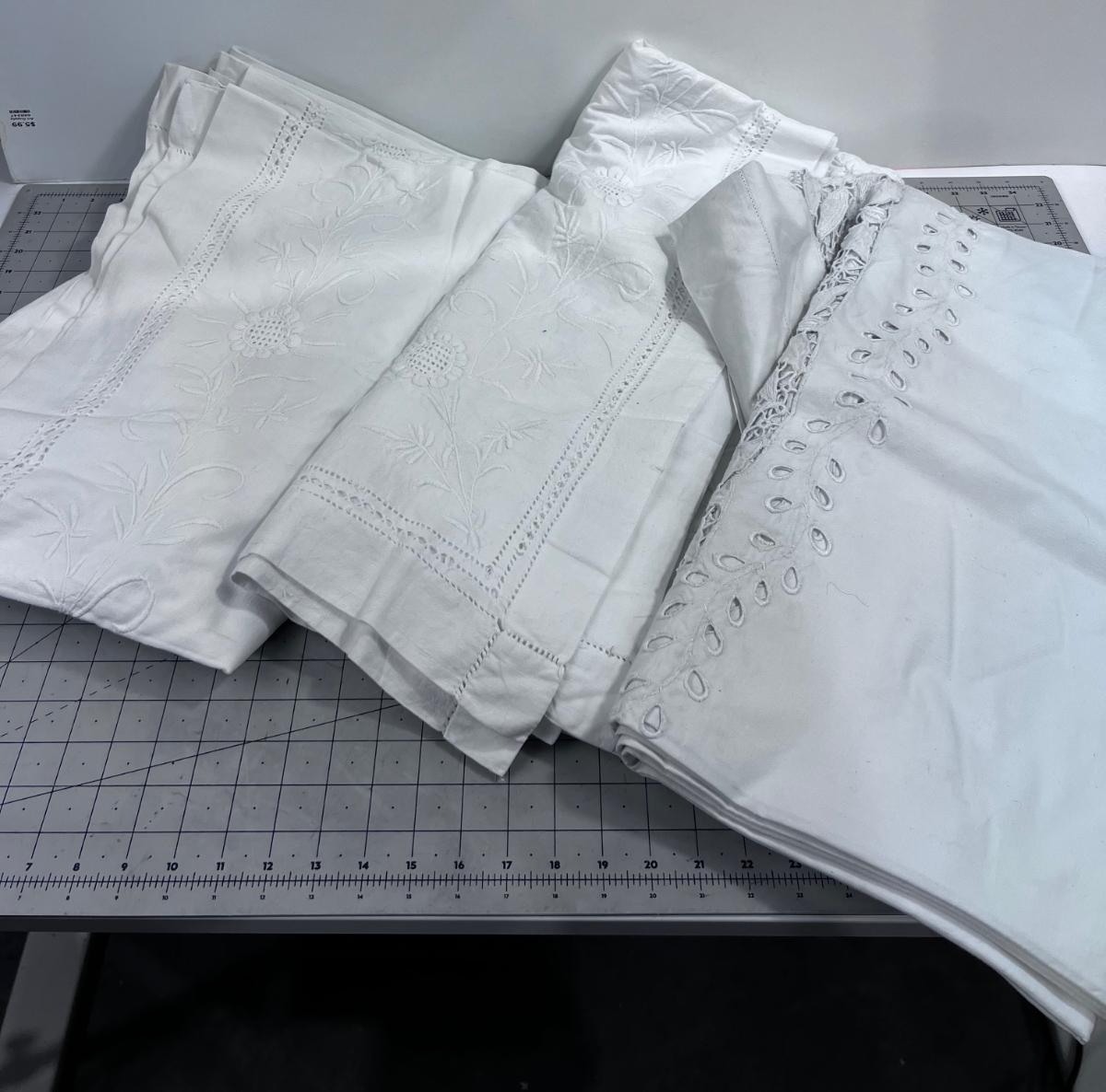 (3) Large White Hand Crafted Table Cloths, Cut OUT