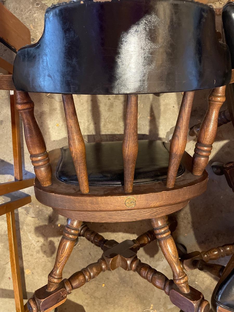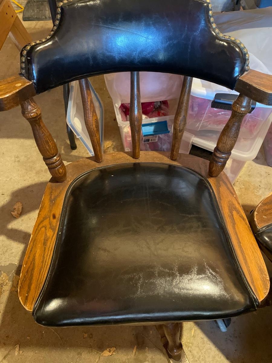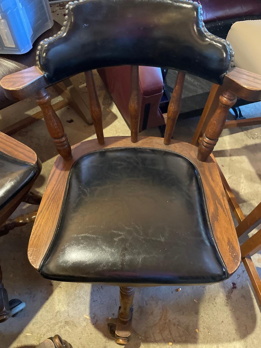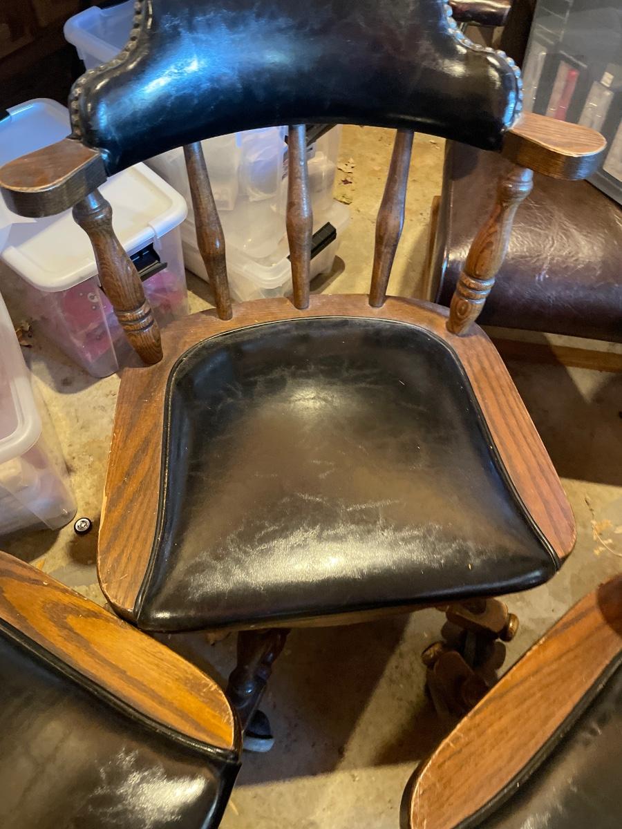 3 Buckstaff leather stud chairs on wheels