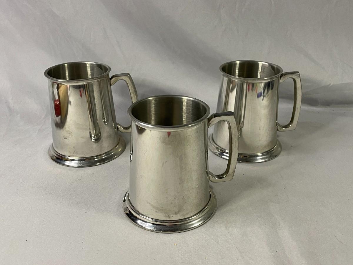 (3) Leonard Eales of Sheffield Pewter Tankards