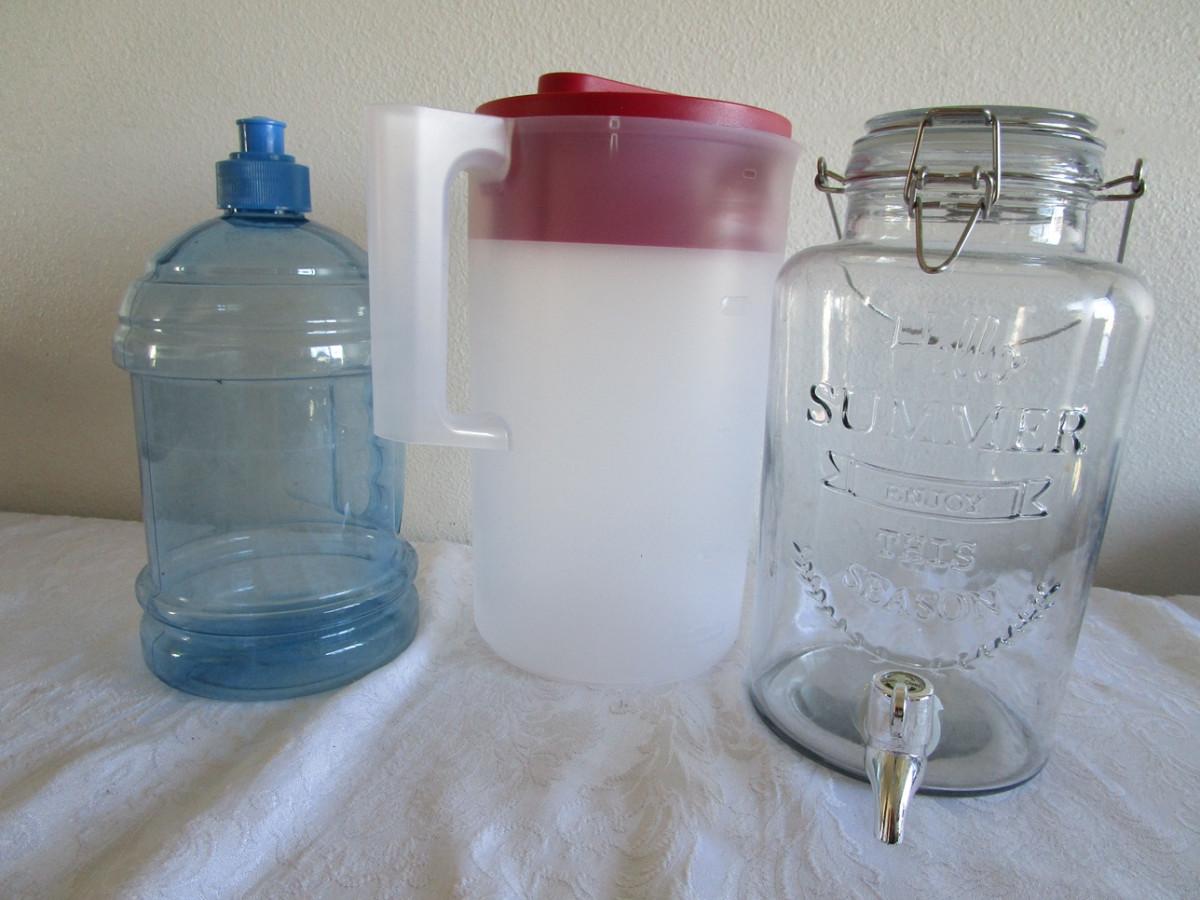 Rubbermaid 1 gallon pitcher, water bottle, glass liquid dispenser