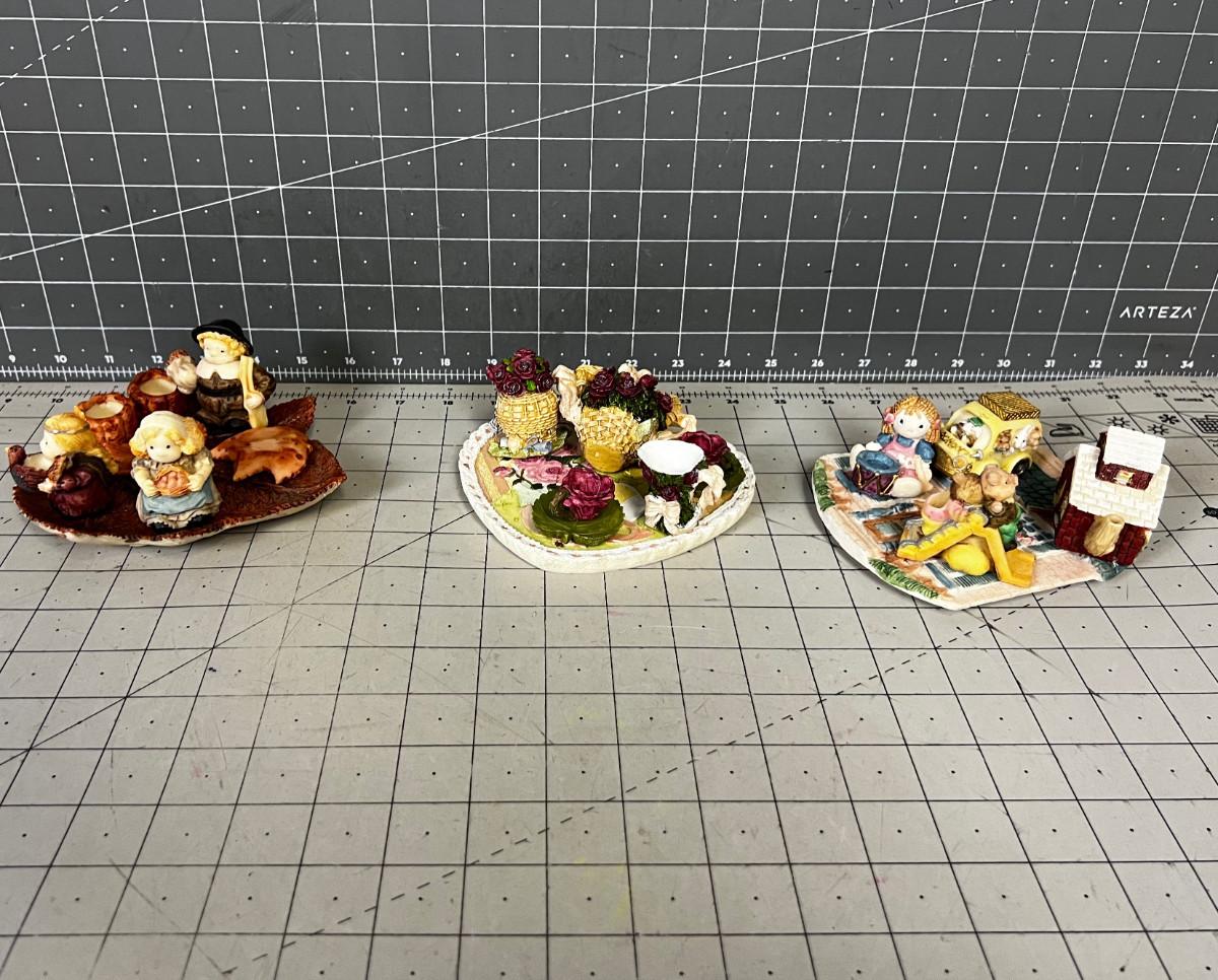 3 Little Tea Pot Sets for Décor' Miniature: School Bears, Thanksgiving and Roses.