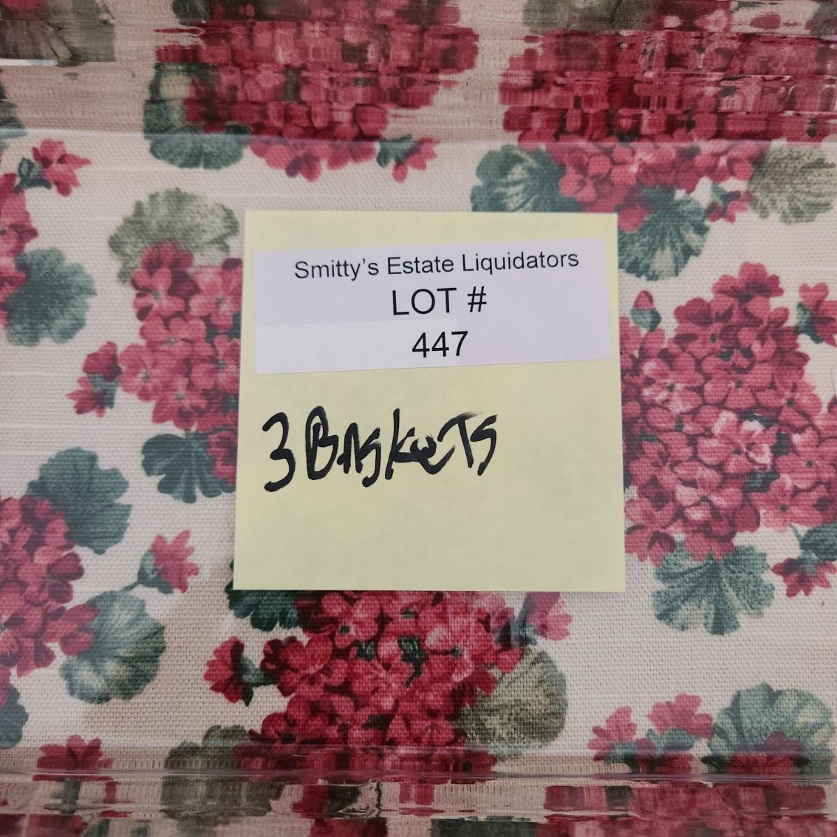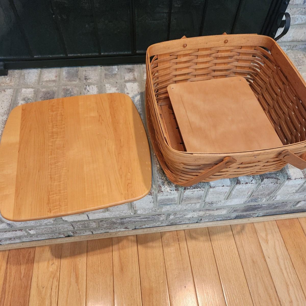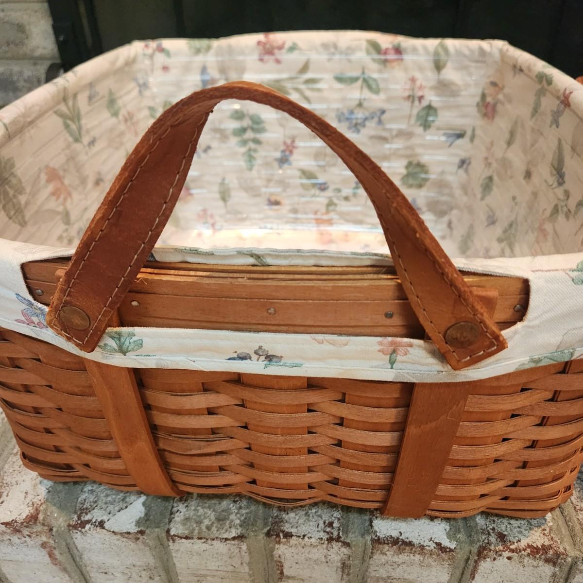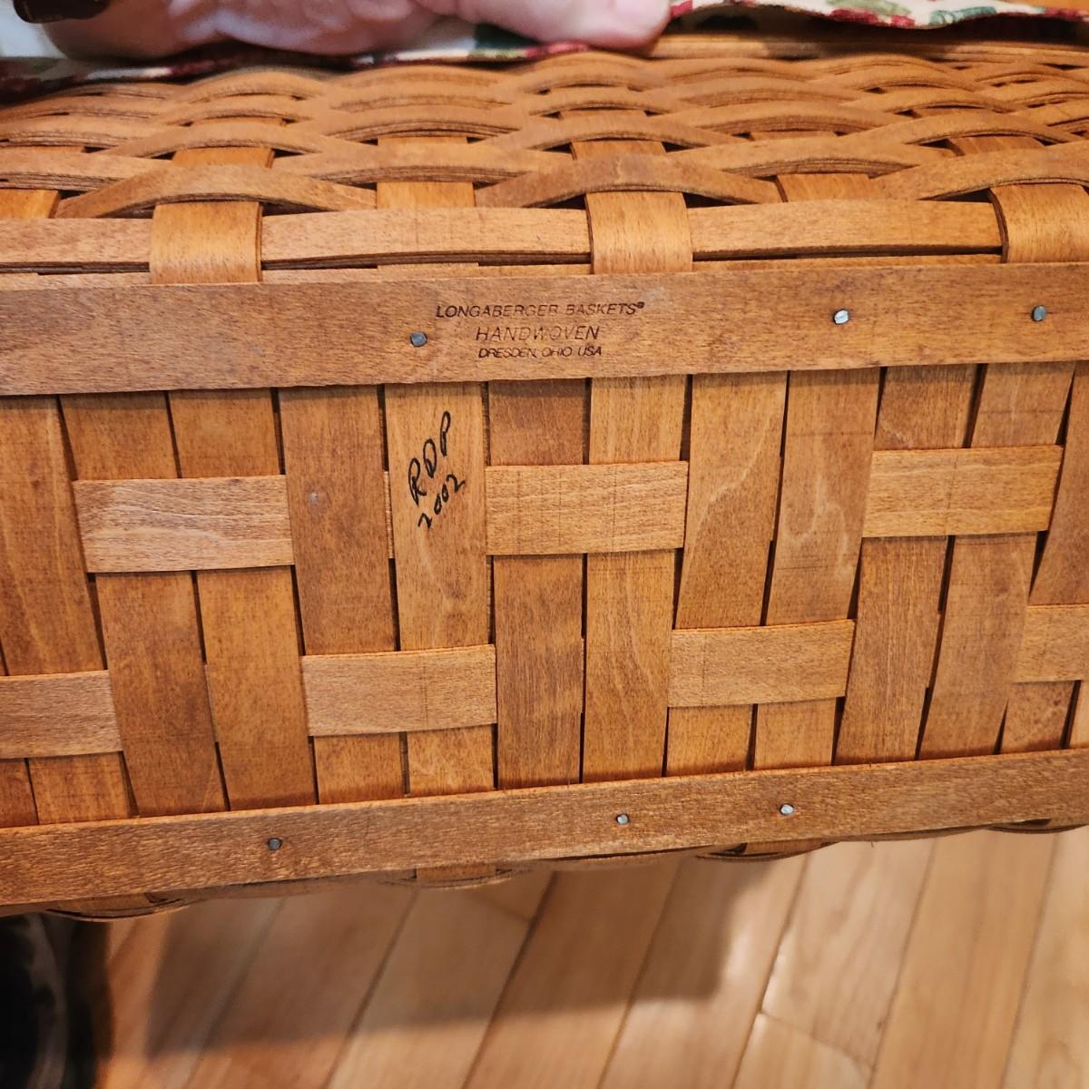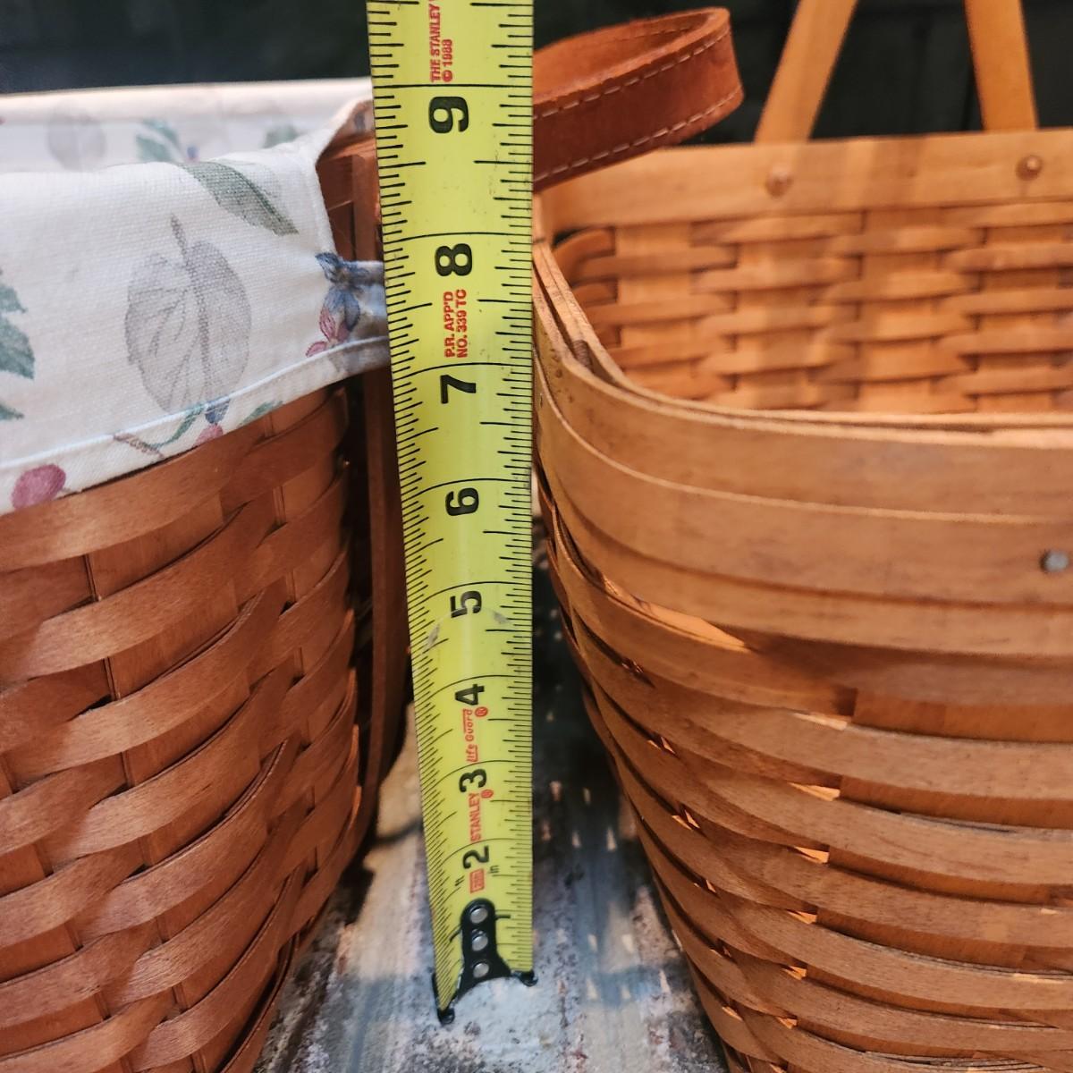 3 Longaberger Baskets 2001 2002 2 with Liners and Protectors, 1 basket w Lid & Tray