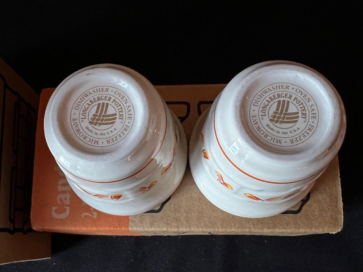 3 Longaberger Pottery Candy Corn Crock and Votives w/ Boxes!