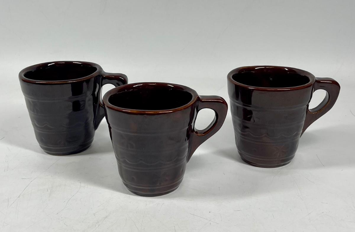 3 Mar-crest Daisy & Dot Pottery Stoneware Brown Mugs Coffee Cup USA