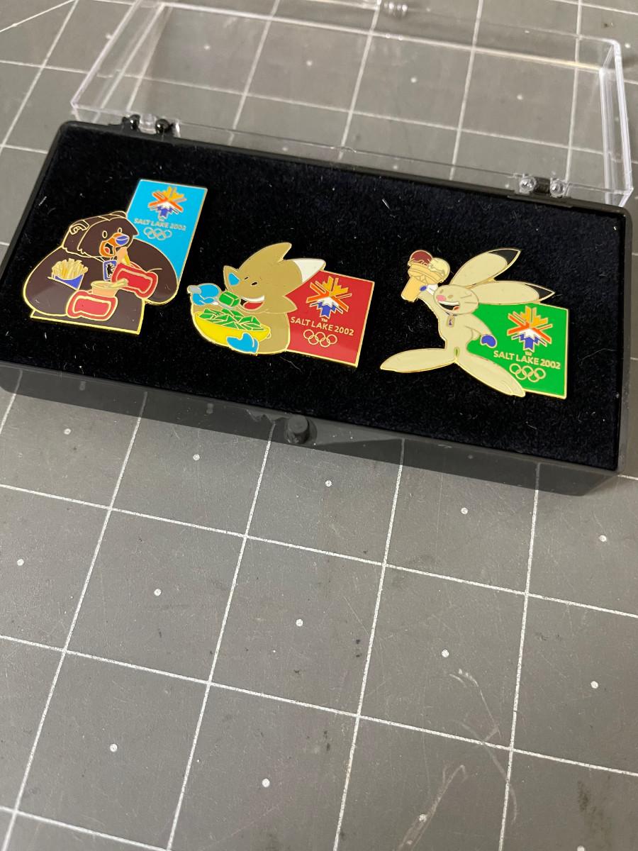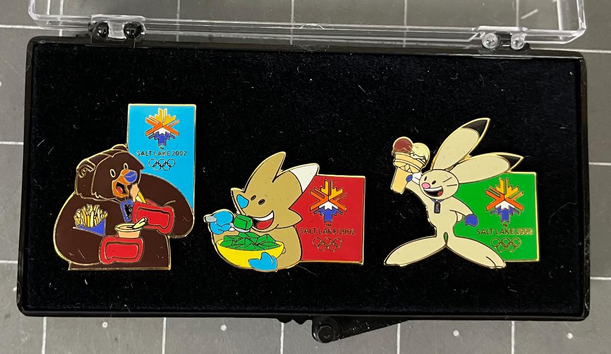 3 Mascots new in Display Case Olympic Pins