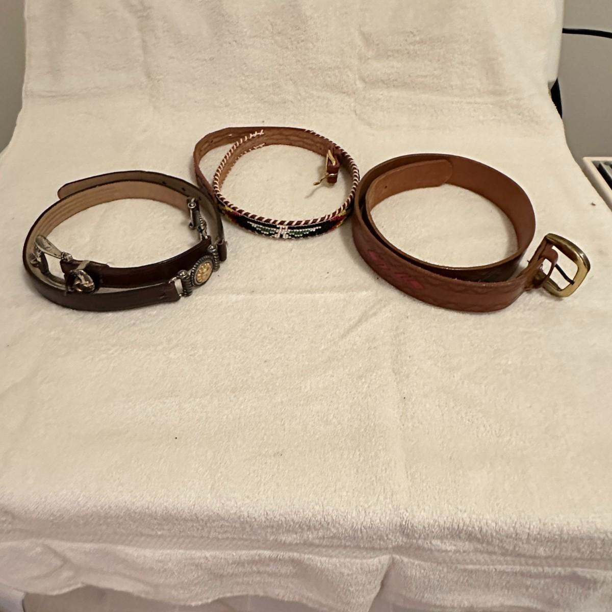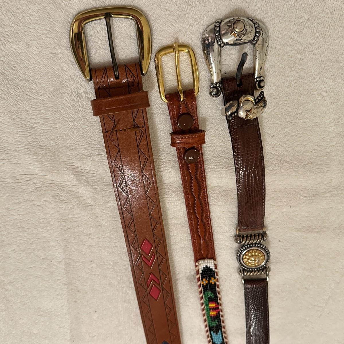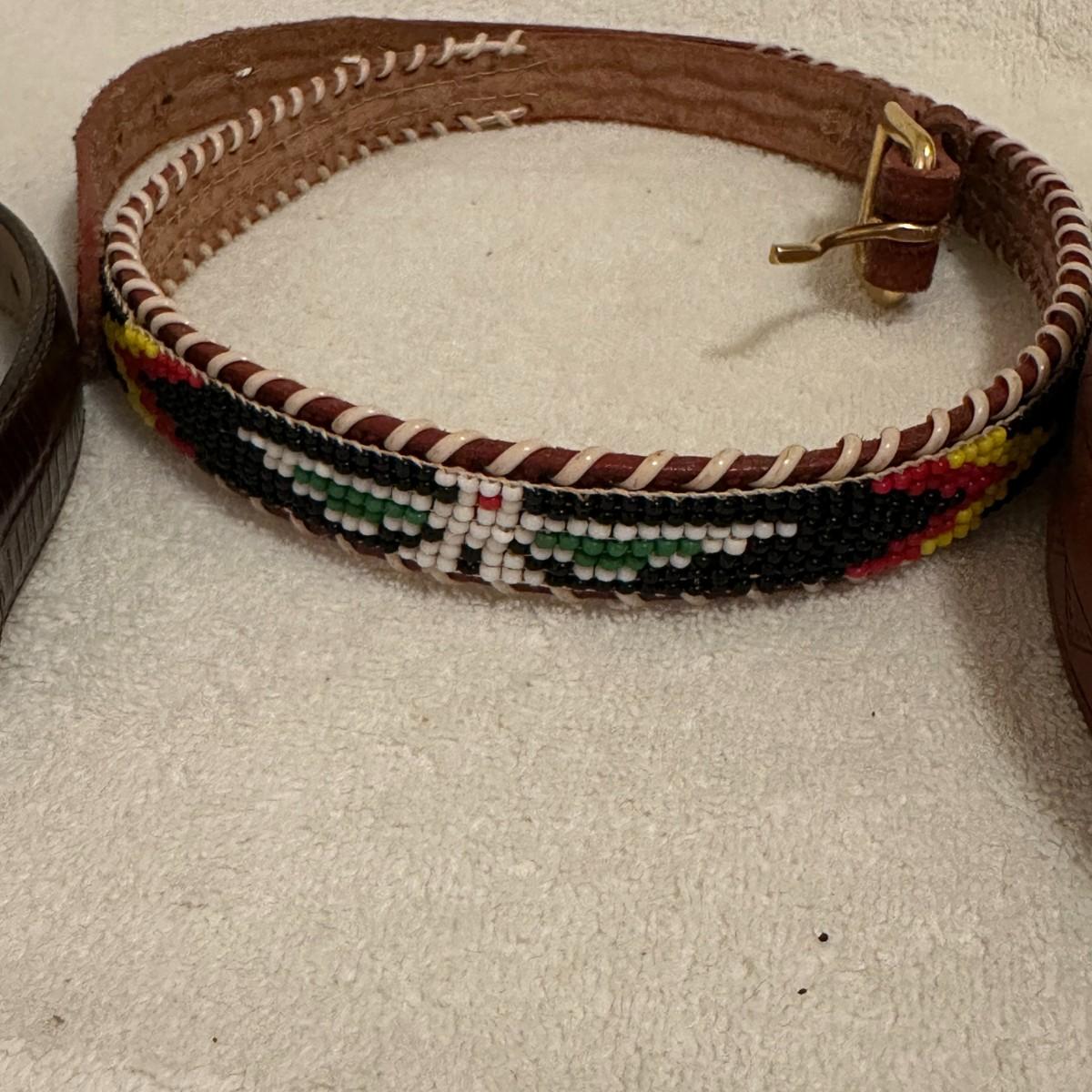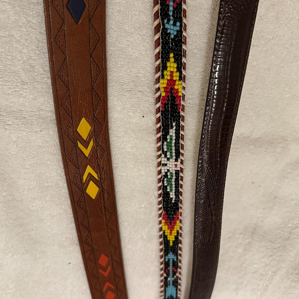 3 Mens Belts, Leather, Western, Beaded, Size 30