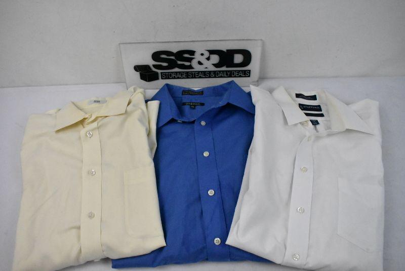 3 Men's Dress Shirts: Cream/Blue/White sz 17.5/34-35