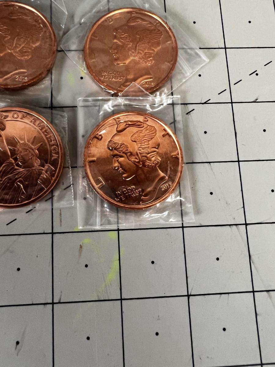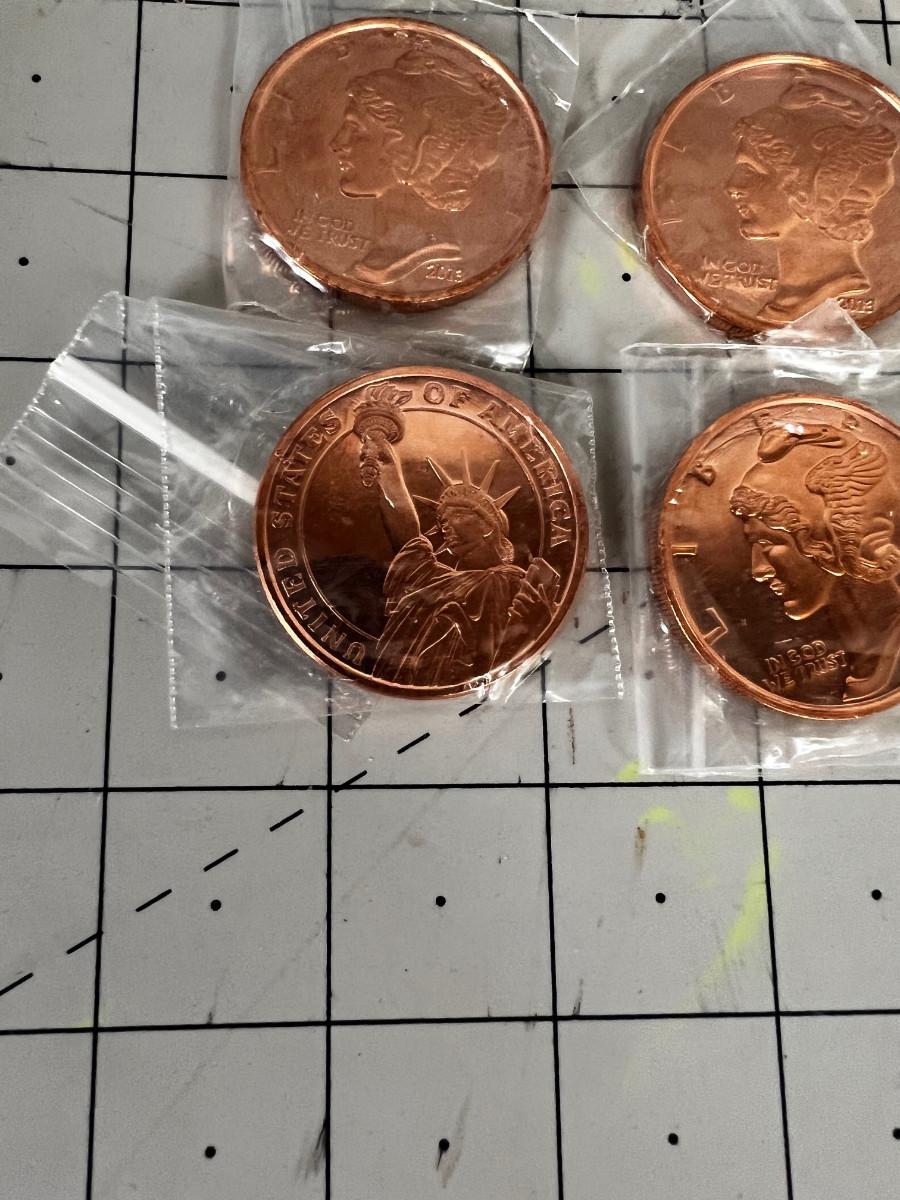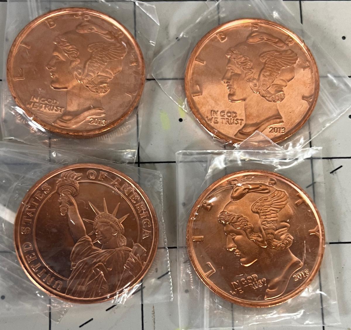3 Mercury and 1 Statue of Liberty 1-once Copper Coin