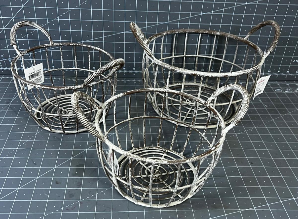 3 Metal Baskets Rustic Plant Holders Etc.