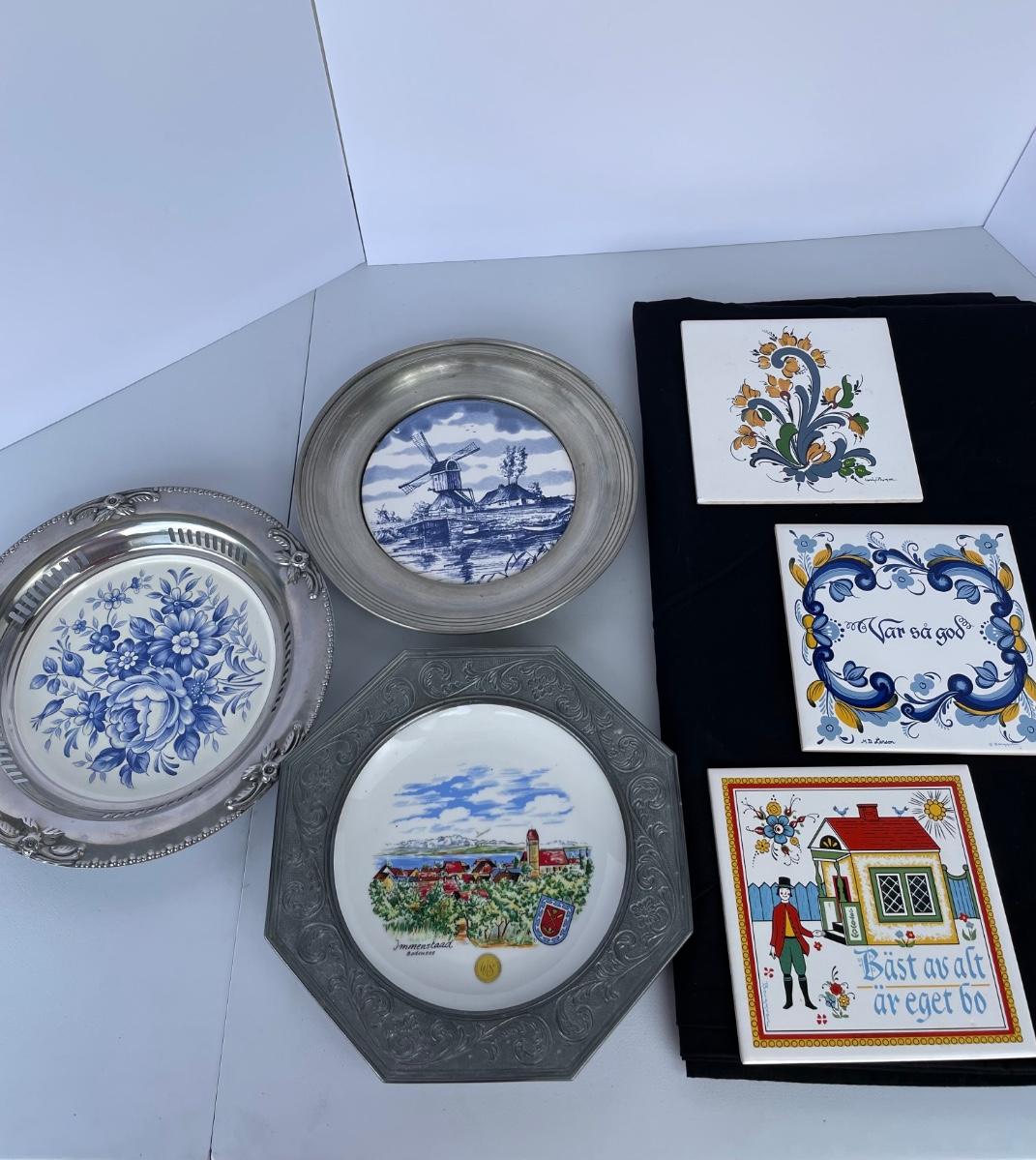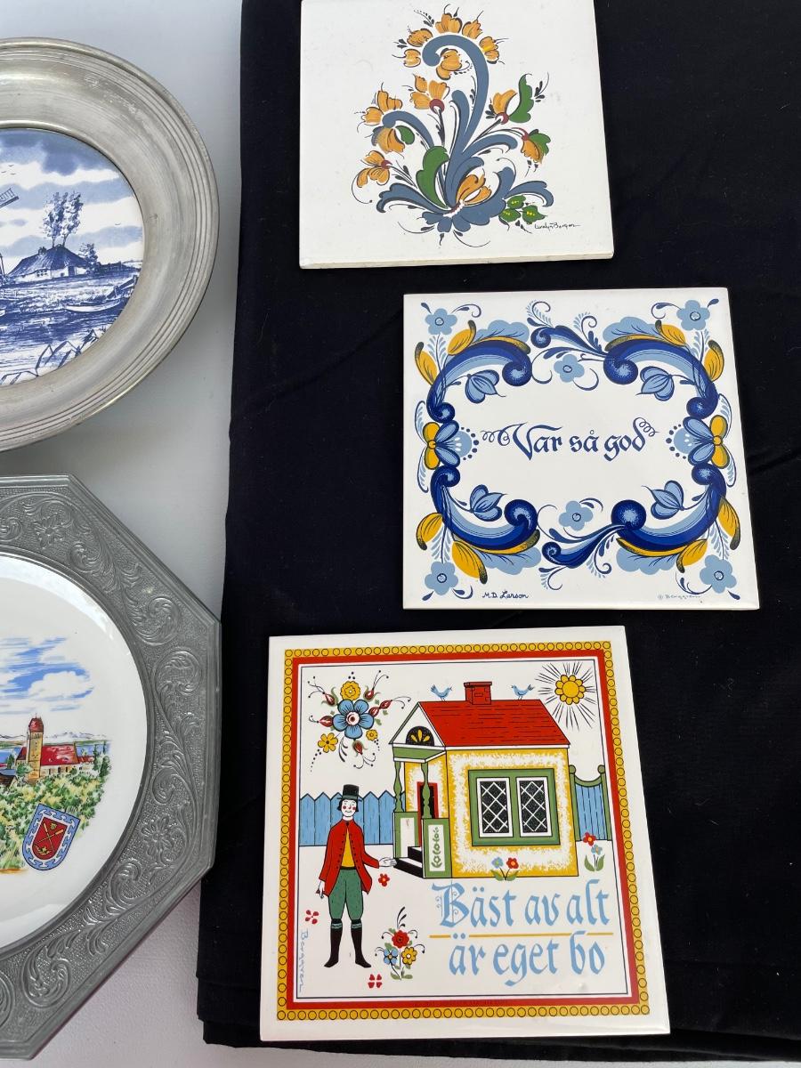 3 Metal Decorative Plates, 3 Ceramic Tiles