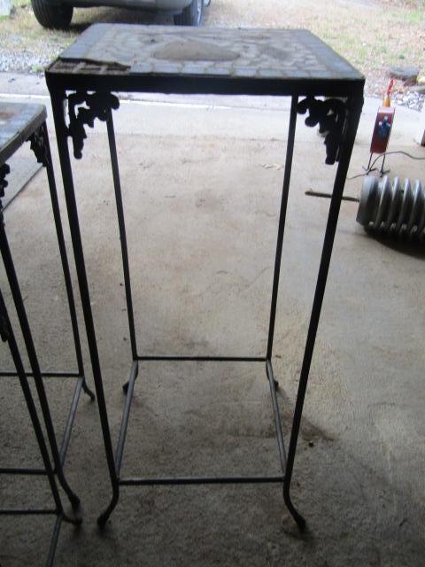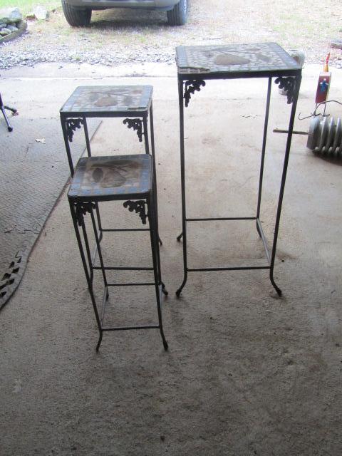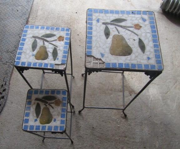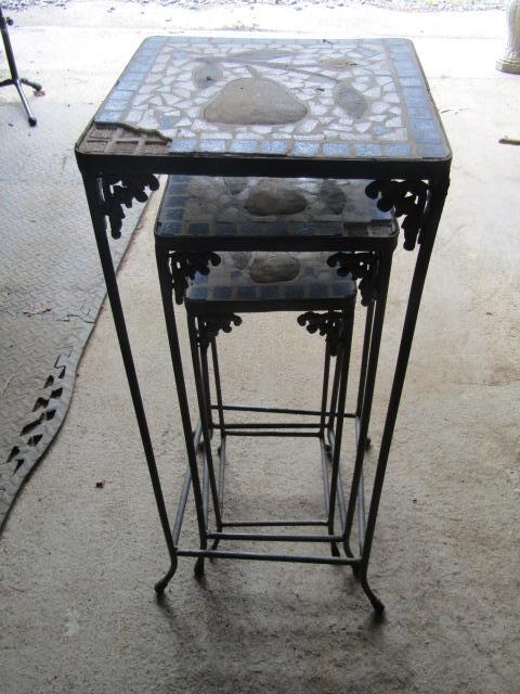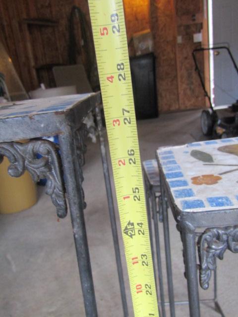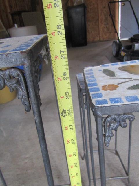3 Metal Frame Nesting Tile Top Patio Tables- Some Damage to Tile- See Pictures Please