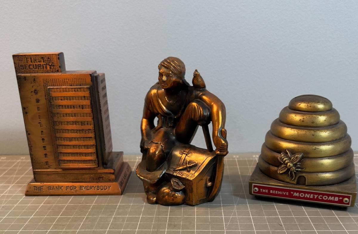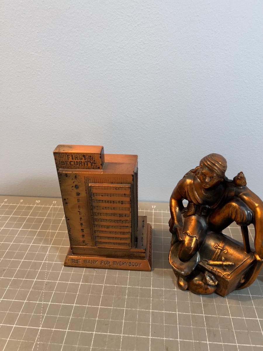 3 Metal Piggy Banks. Not Complete, no Bottoms.