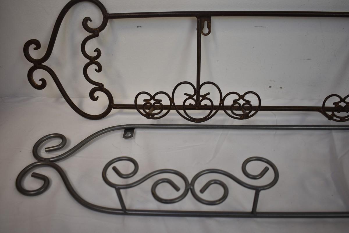 3 Metal plate wall racks: 2 vertical, 1 horizontal, 40", 41 1/2", 55"