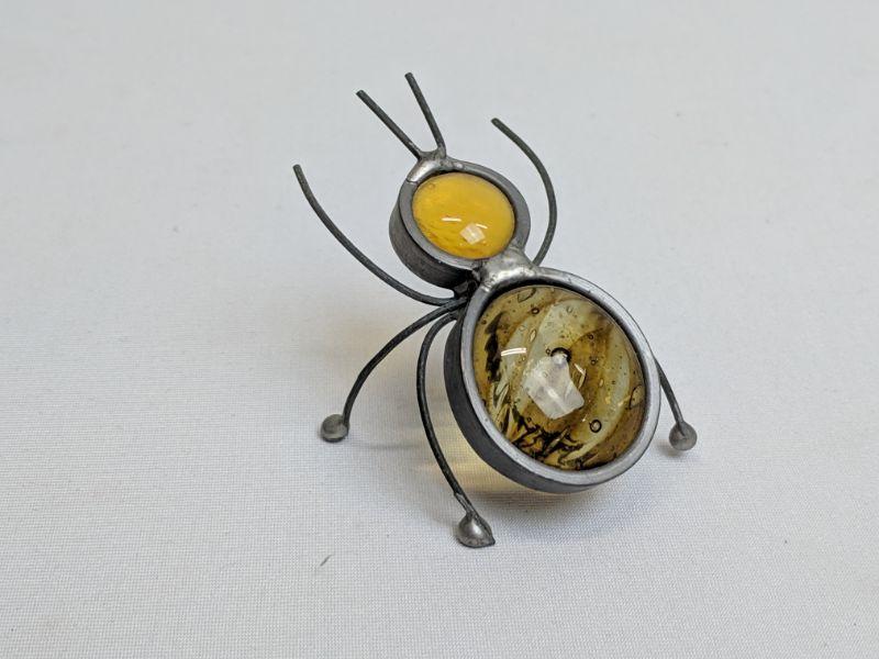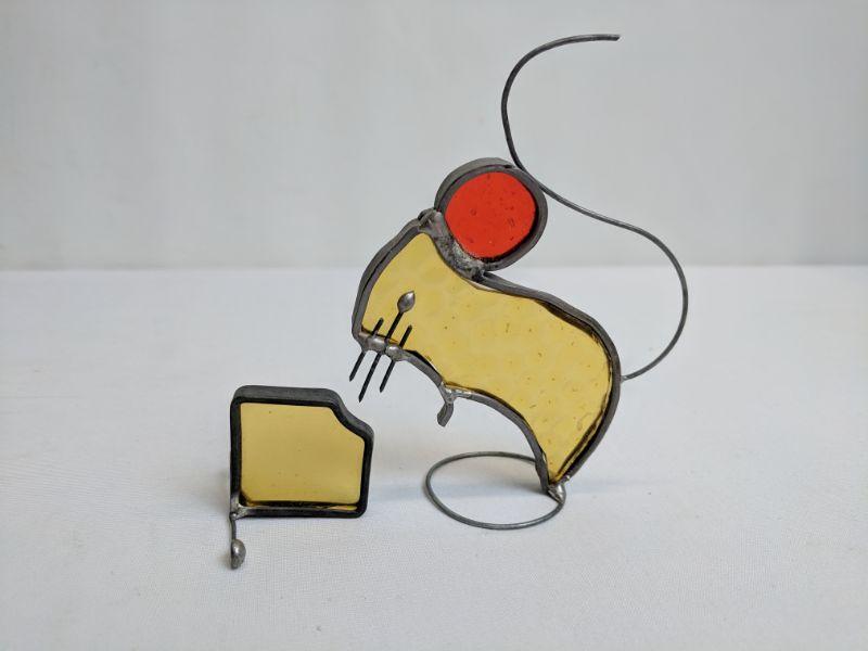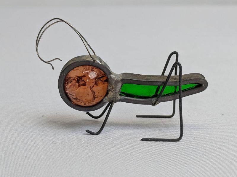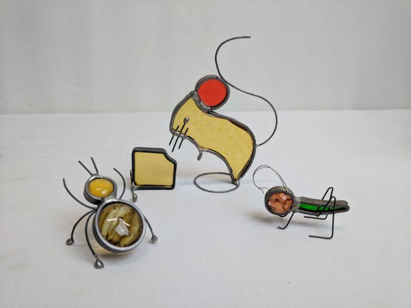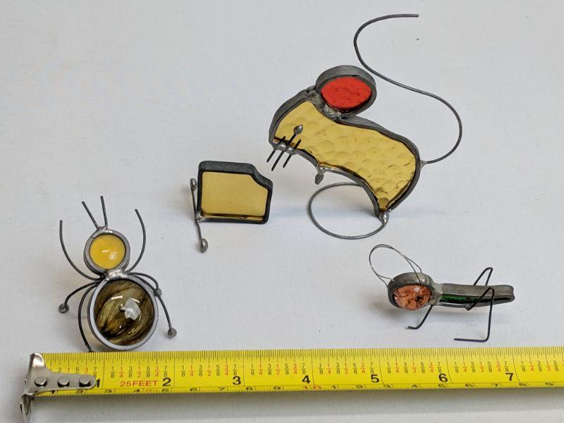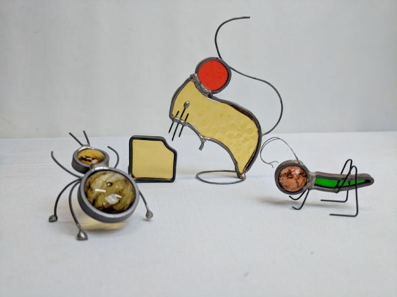 3 Metal/Glass Art Pieces, Mouse w/Cheese, Grasshopper, Ant