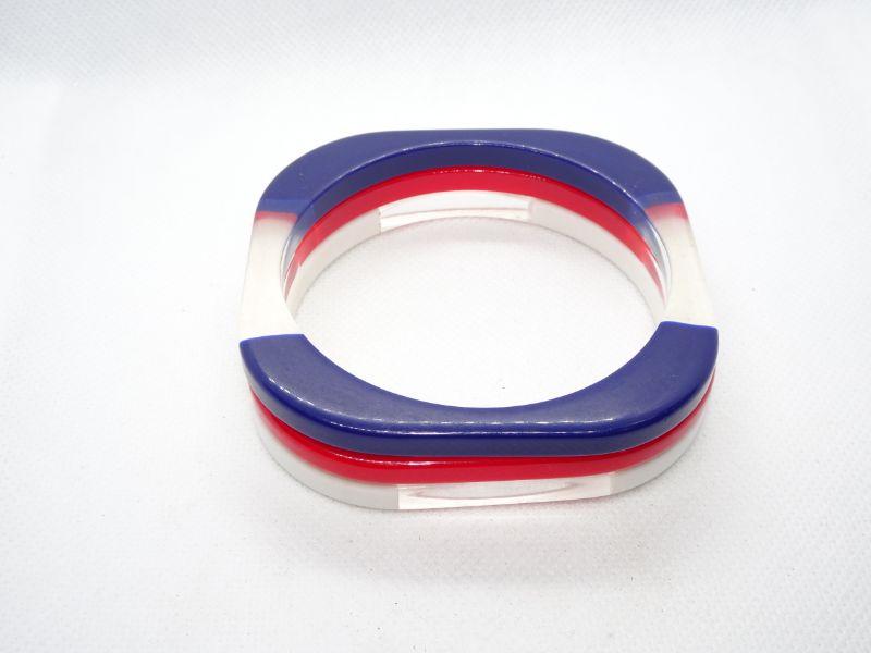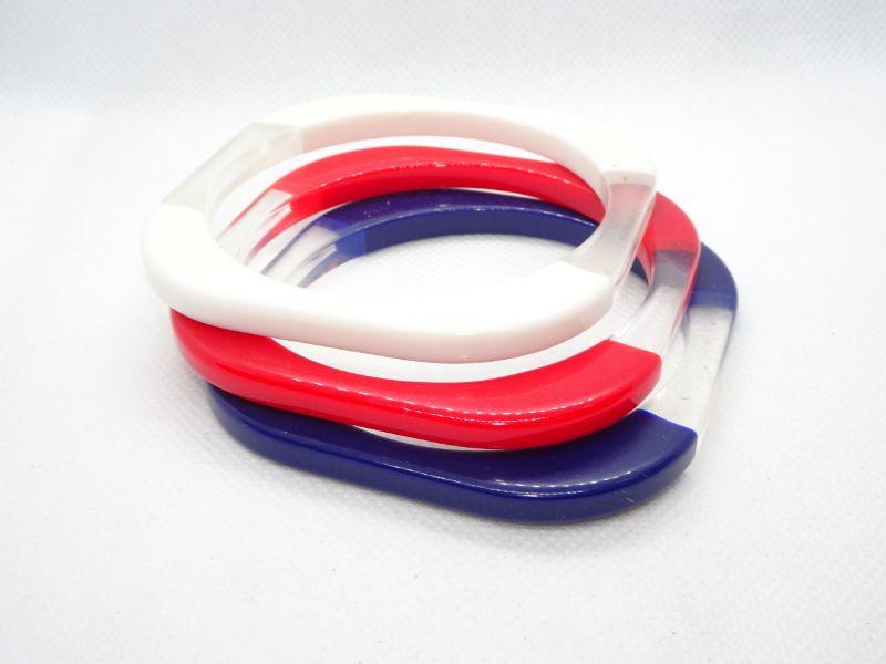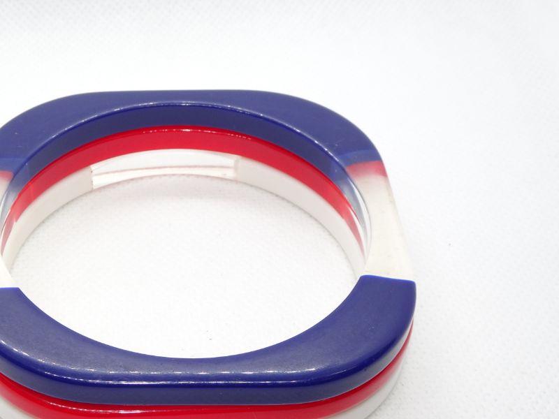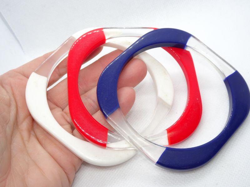 3 Mid Century Red, White Blue Plastic Bangles, Patriotic Bracelets