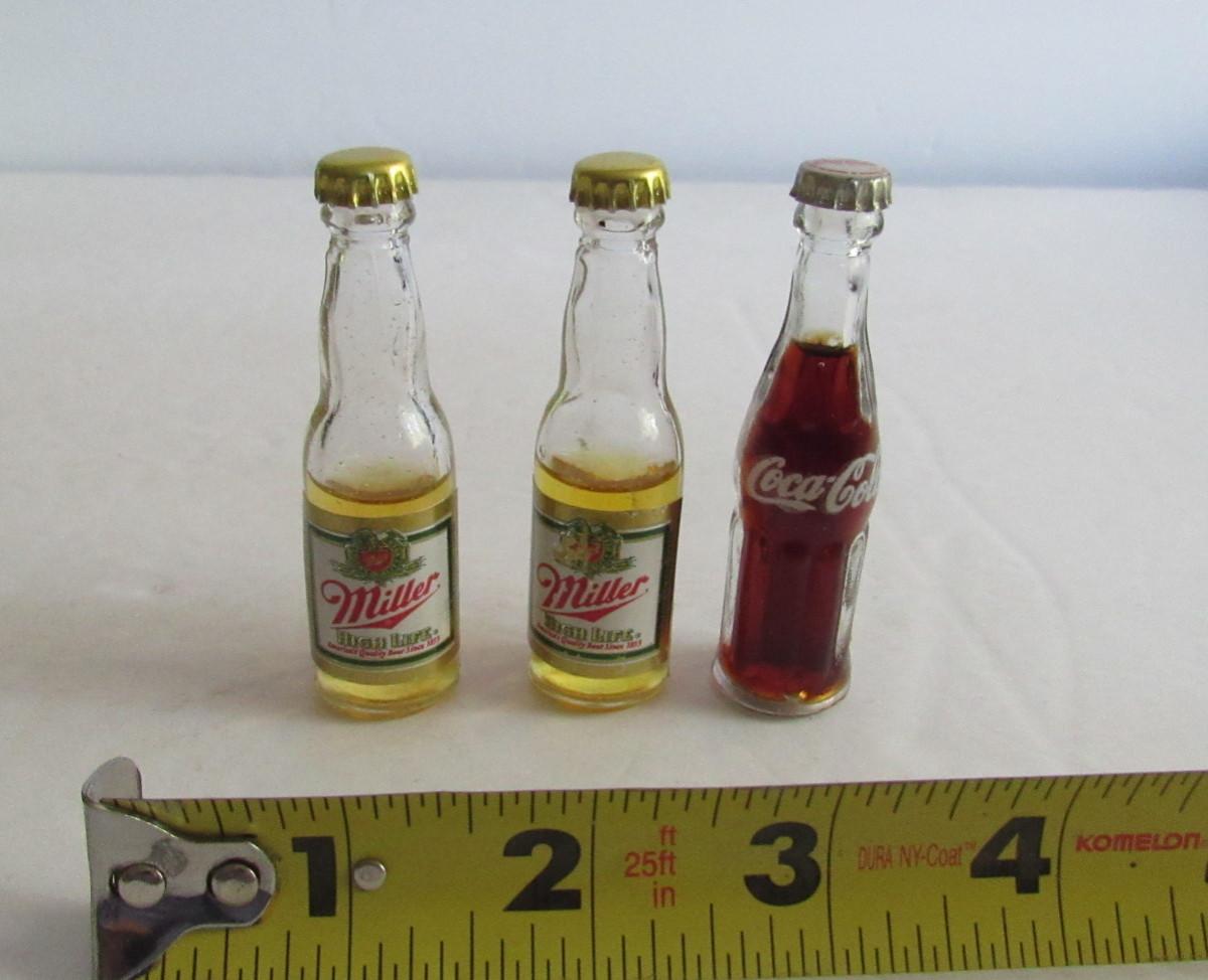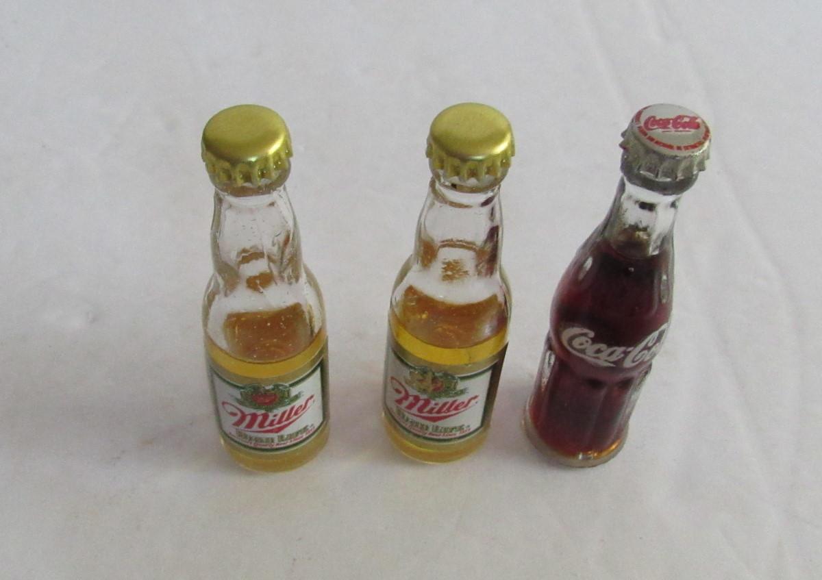 3 Mini Bottles Miller and Coca Cola
