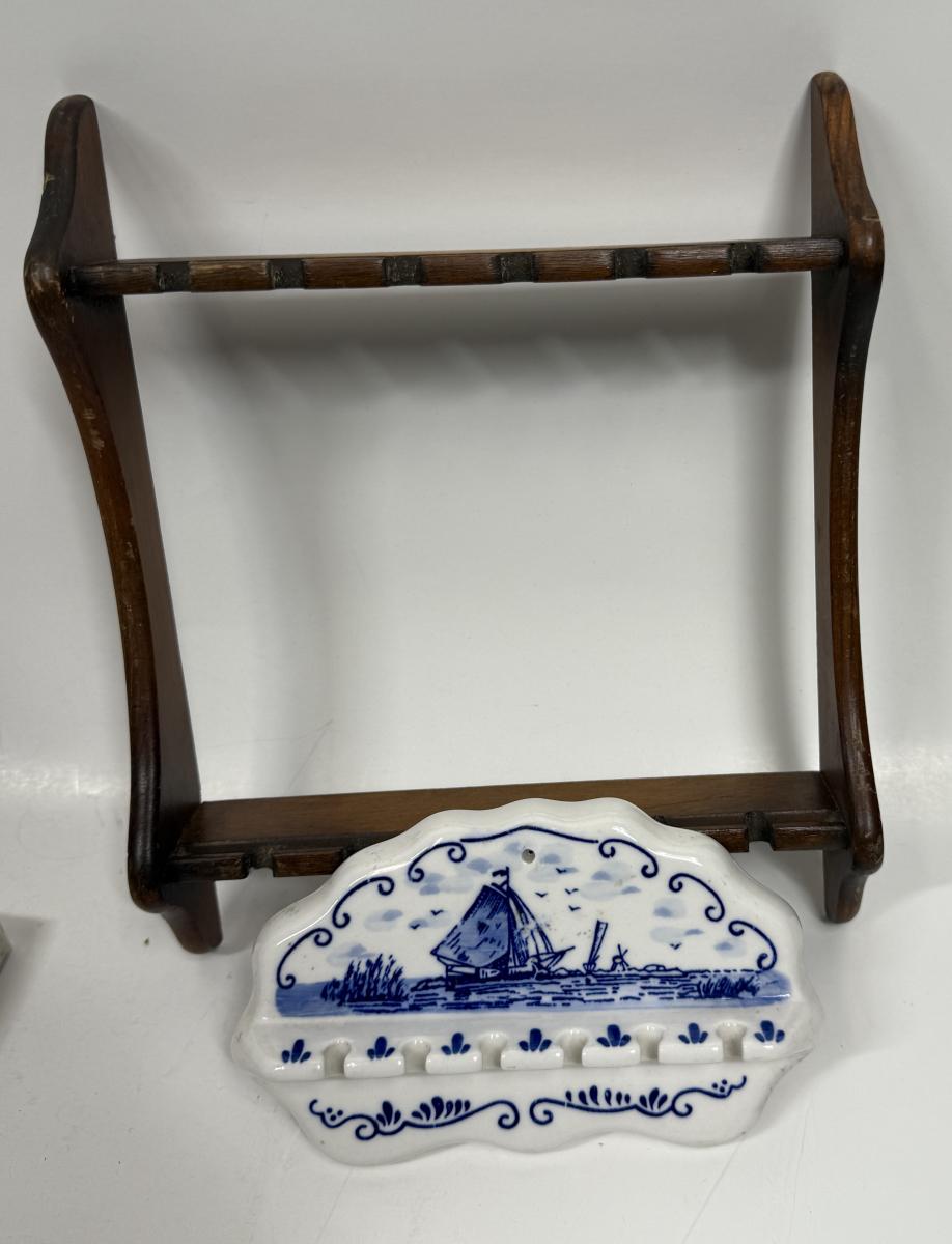 3 miniature spoon lot with 2 display pieces wood and Delft