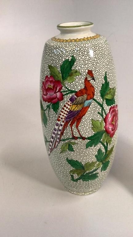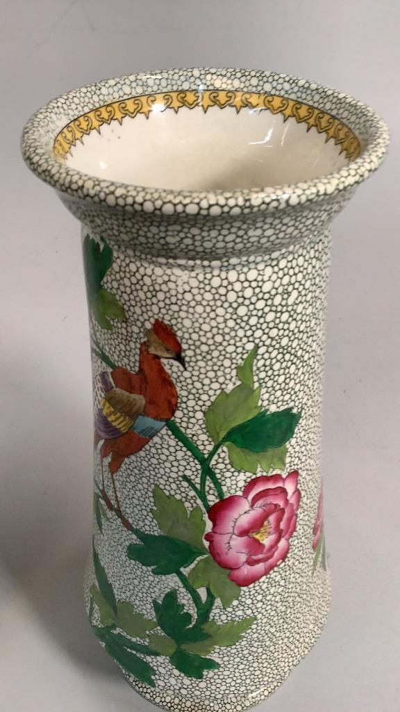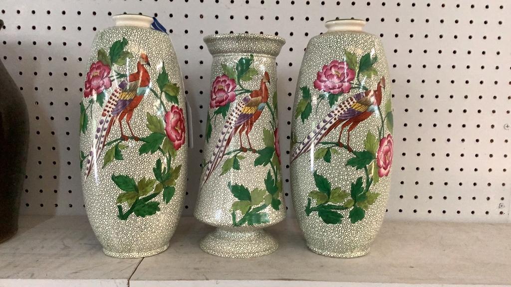 Pair 13 inch tall vase with narrow neck, 11.5 inch vase with flared rimÂ….Similar Patterns on each, all marked Mintons EnglandÂ…good condition
