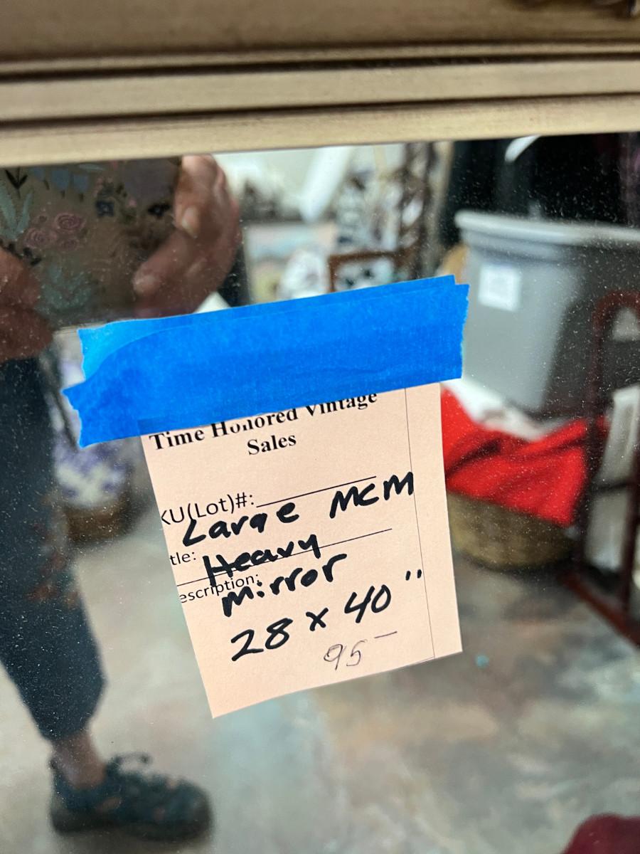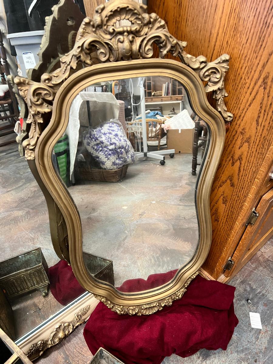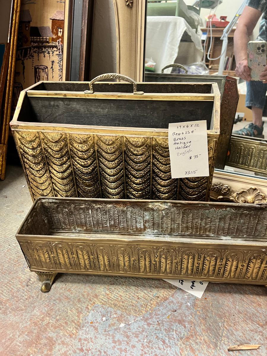English newspaper holder, brass, rectangular metal box, MCM Large framed mirror, heavy, Oval Antique mirror, rectangle Store mirror.