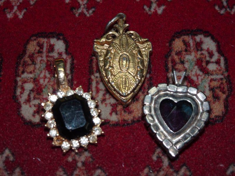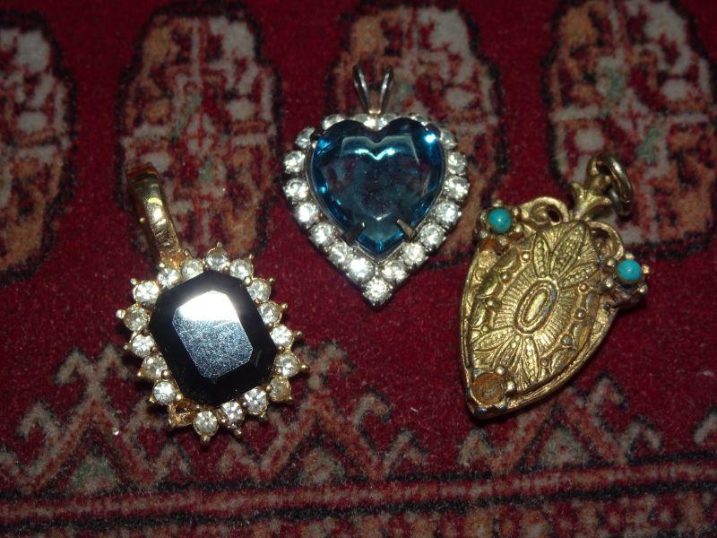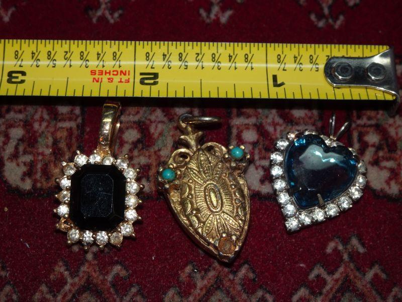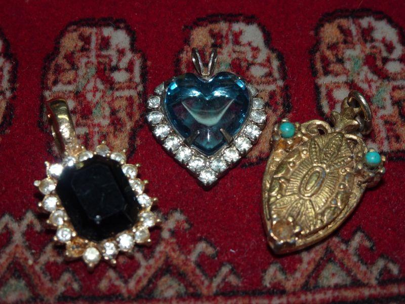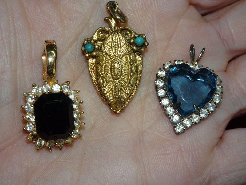 3 Misc. Pendant Charms, Blue Diamond with Rhinestones, Black Diamond with Rhinestones, Victorian Style Charm Pendant