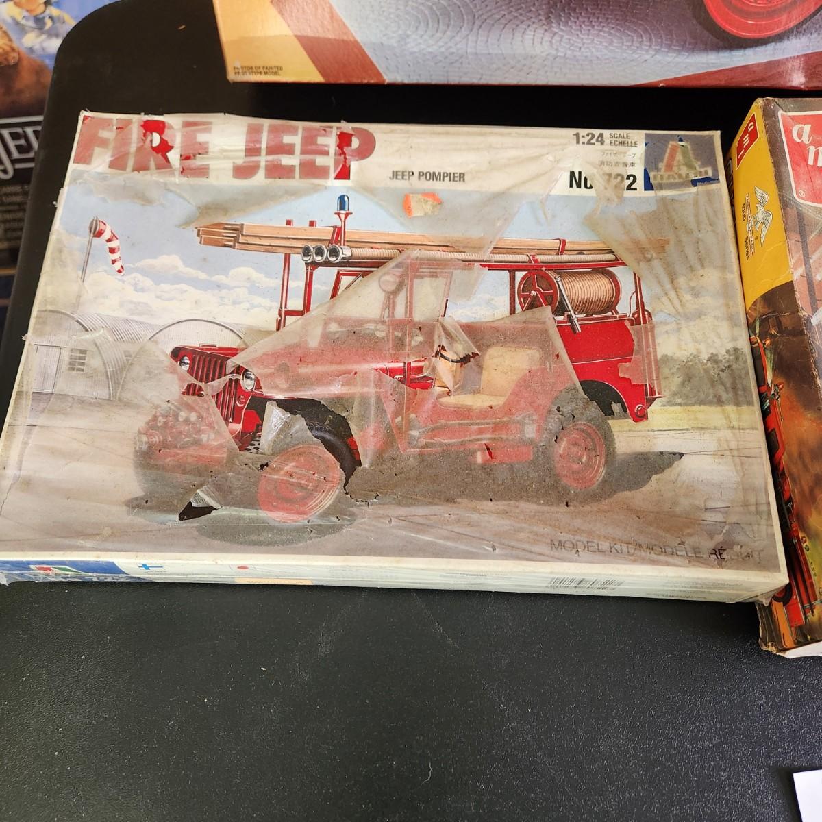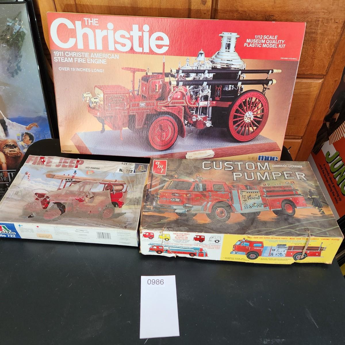 3 Models Fire Trucks Christie Fire Jeep Sealed Pumper Box only with Misc parts inside