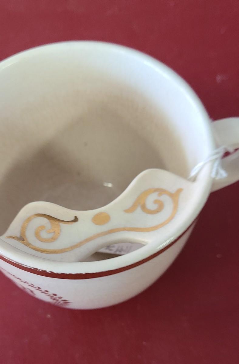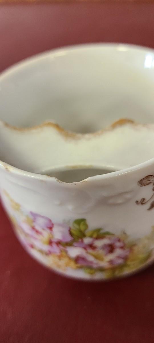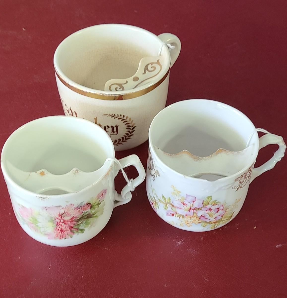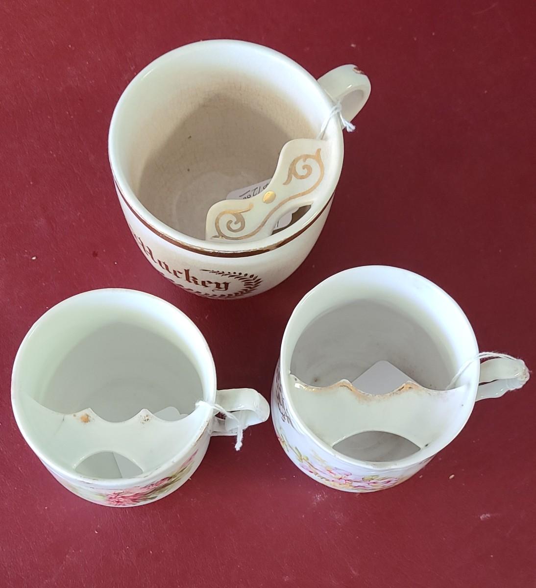 3 Moustache cups  -  one has a chip