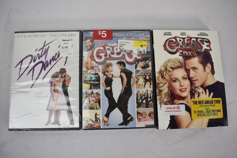3 Movies on DVD: Dirty Dancing -to- Grease Live! - New, Sealed