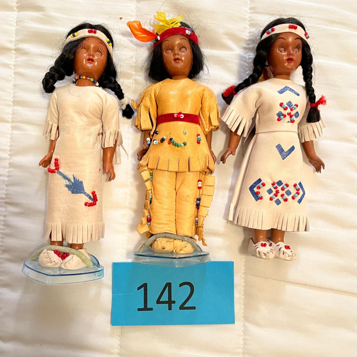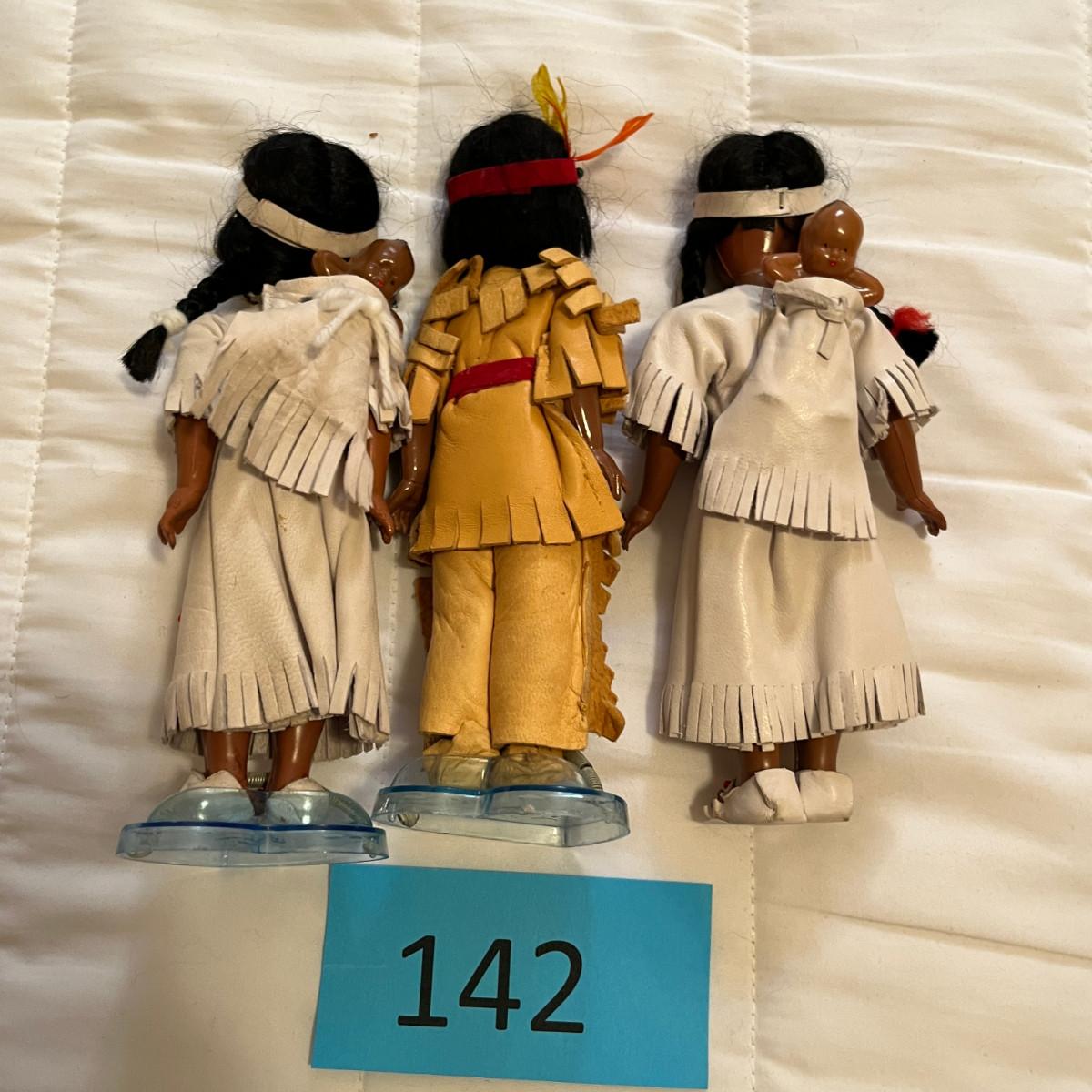3 Nancy Ann Style Plastic Native American Dolls