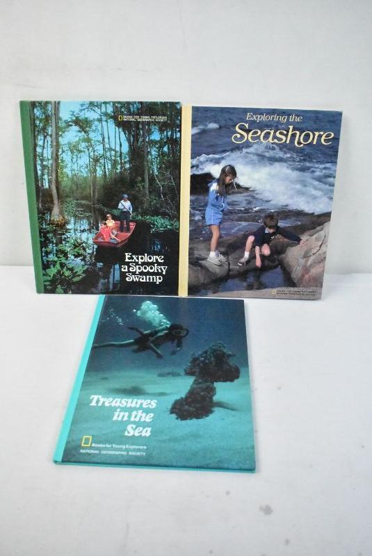 3 National Geographic Hardcover Books: Explore a Spooky Swamp -to- Treasures in the Sea, Vintage 1984 - New Condition