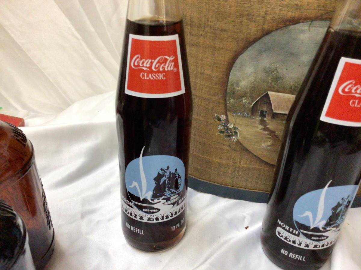 You get Three Coca Cola ND 100 centennial bottles, two Bertch beer Sioux City beer bottles. You also get the oval box no lid.