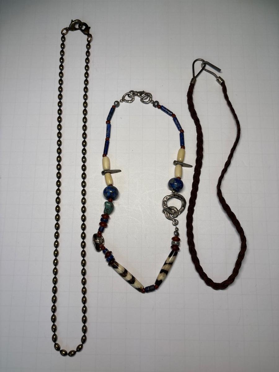 Brass Thon, metal bead, necklace, multicolor, stone, necklace, leather, braided necklace