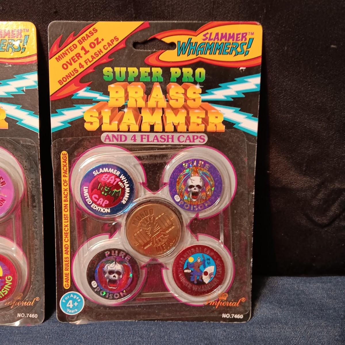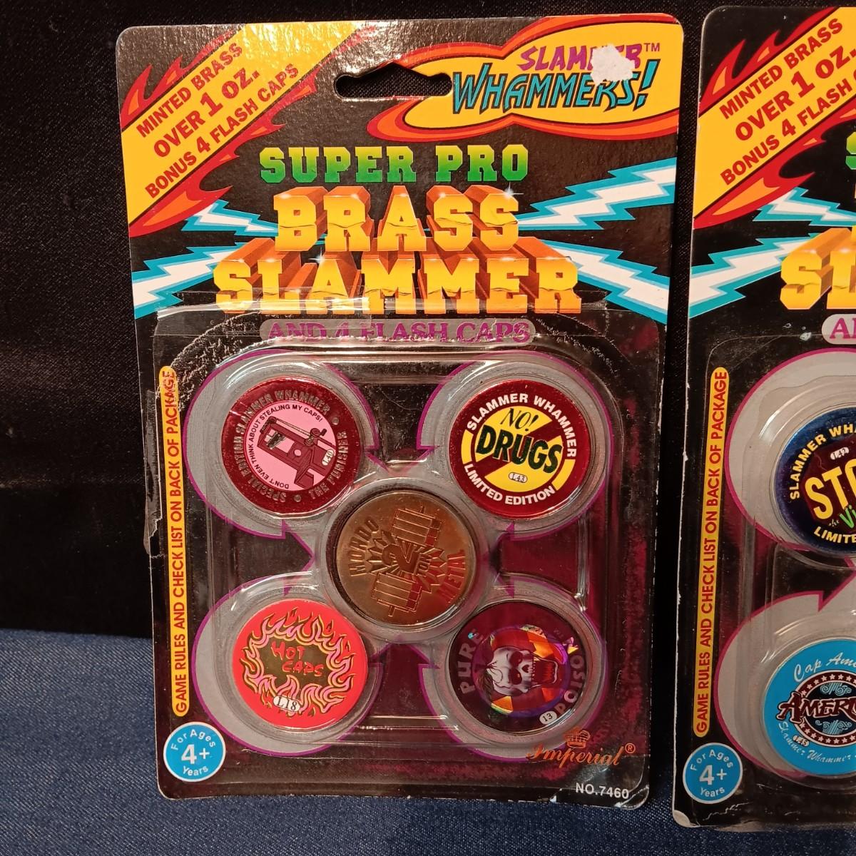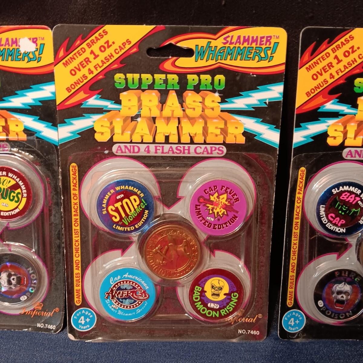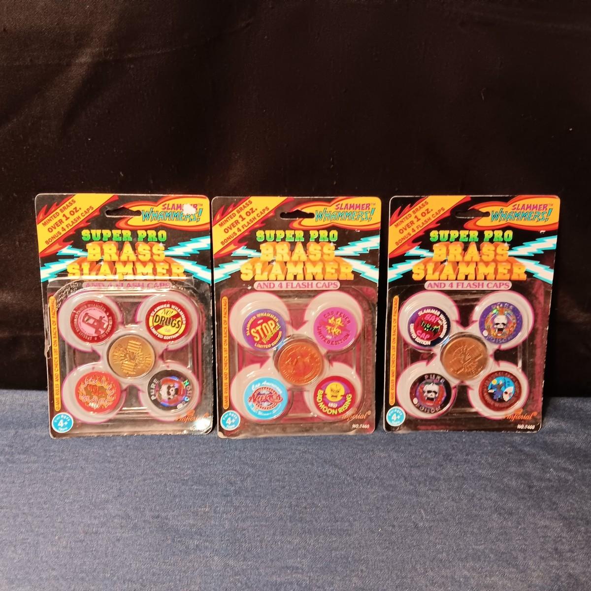 3 NEW 1994 SUPER PRO BRASS SLAMMER & 4 FLASH CAPS