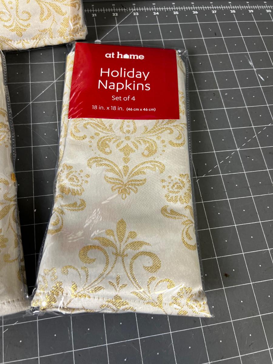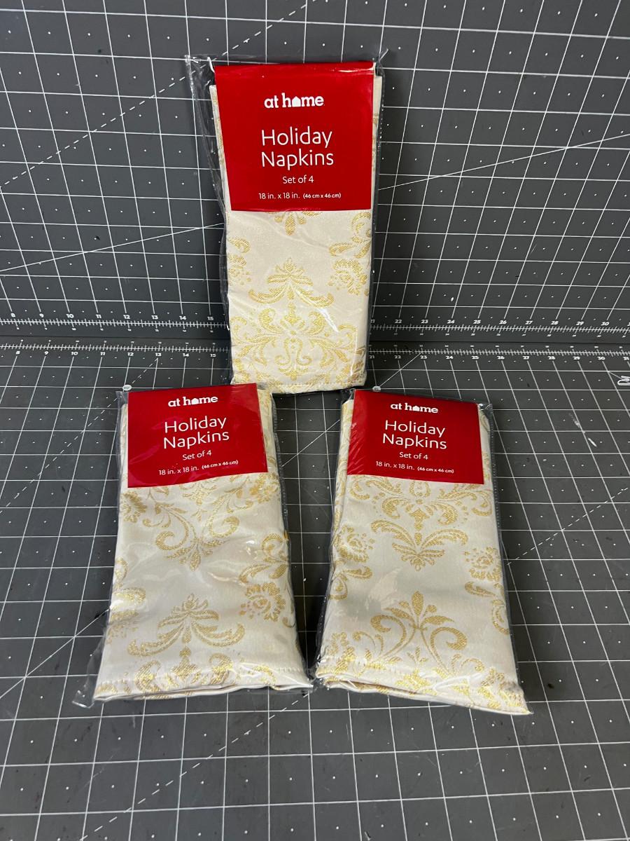 3 NEW Packages of 4 ea. Holiday Napkins Taupe and Gold Tone